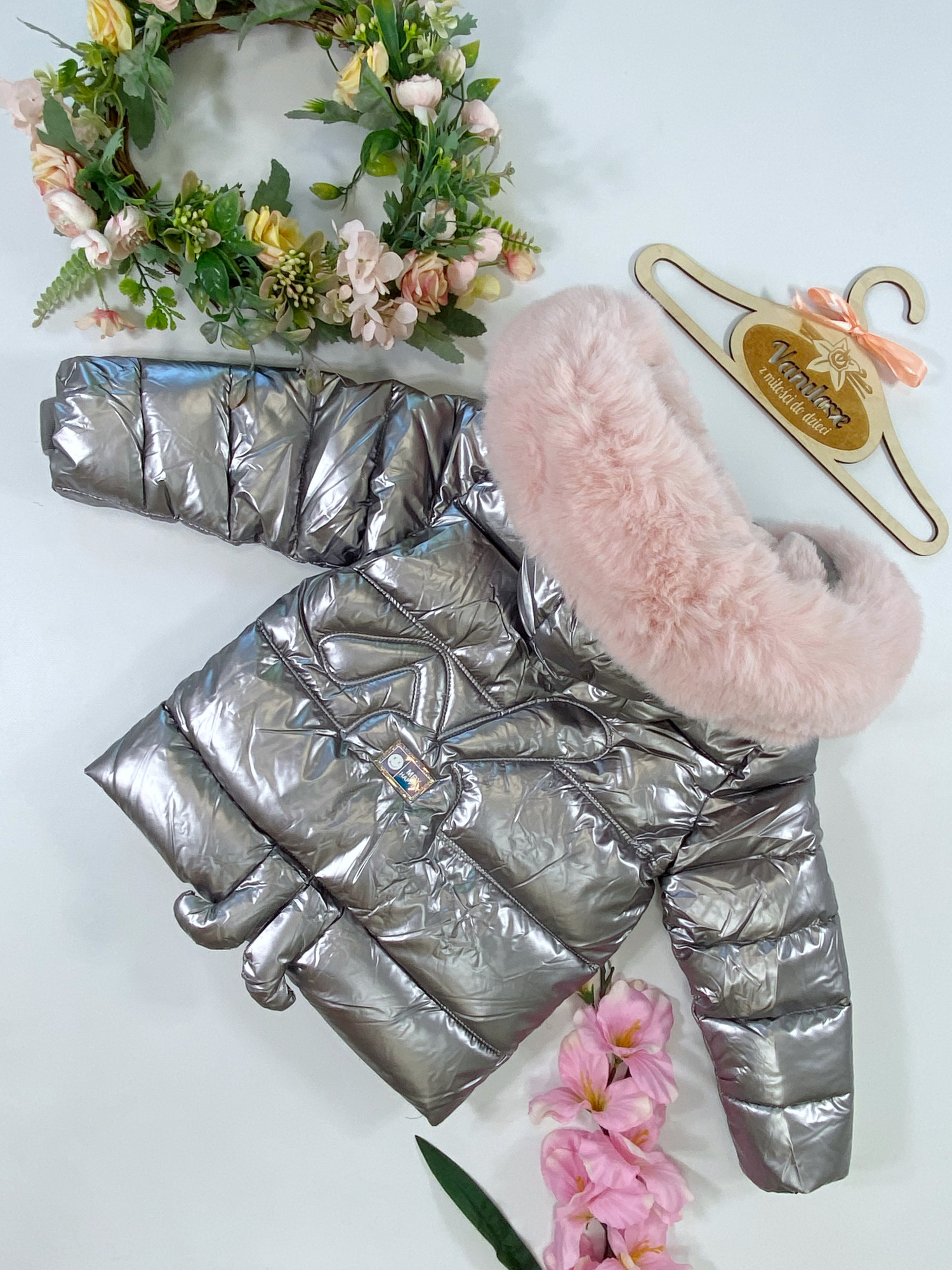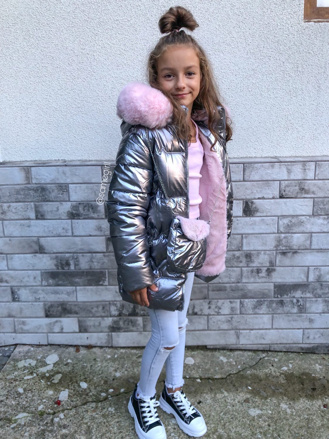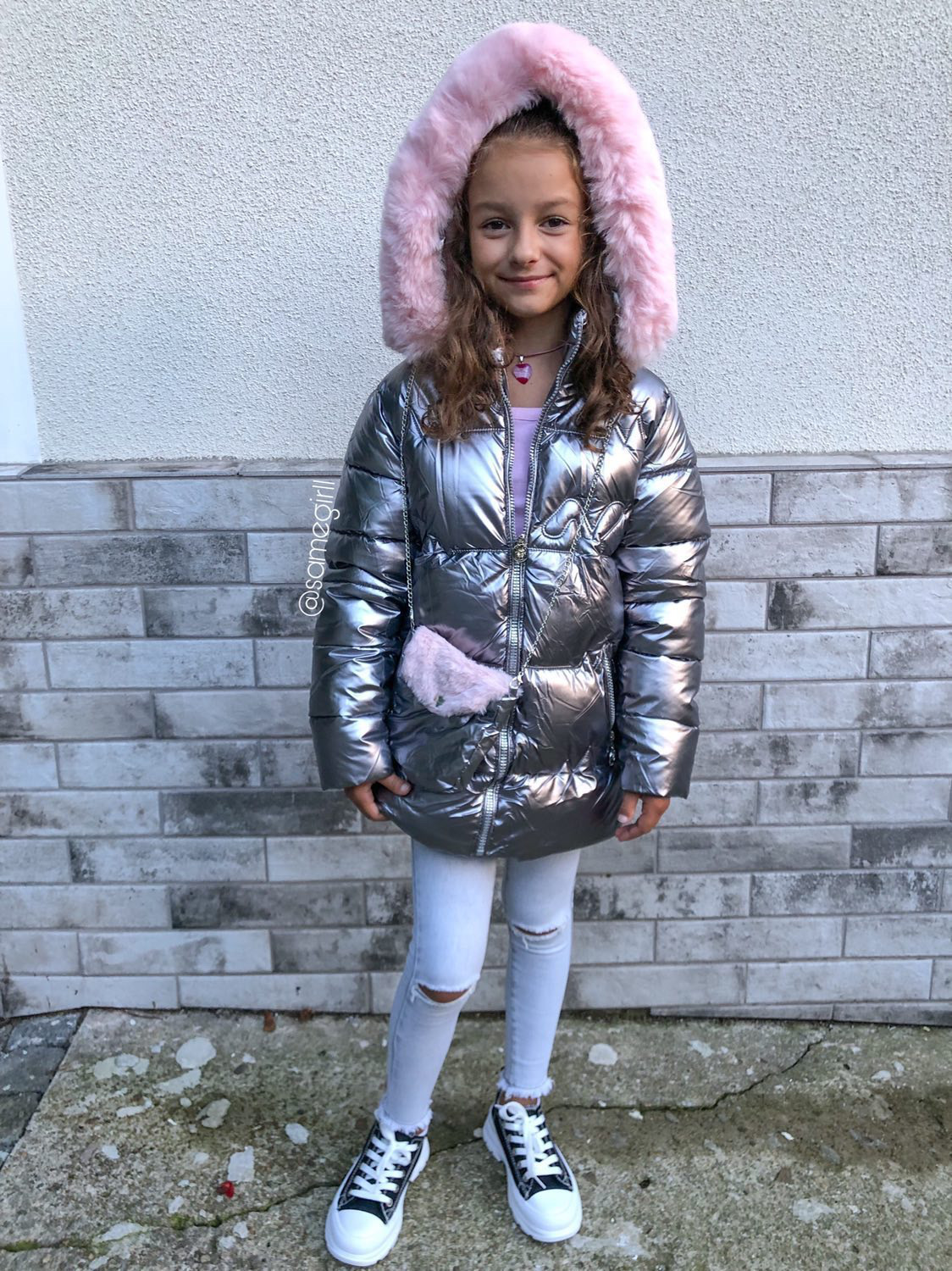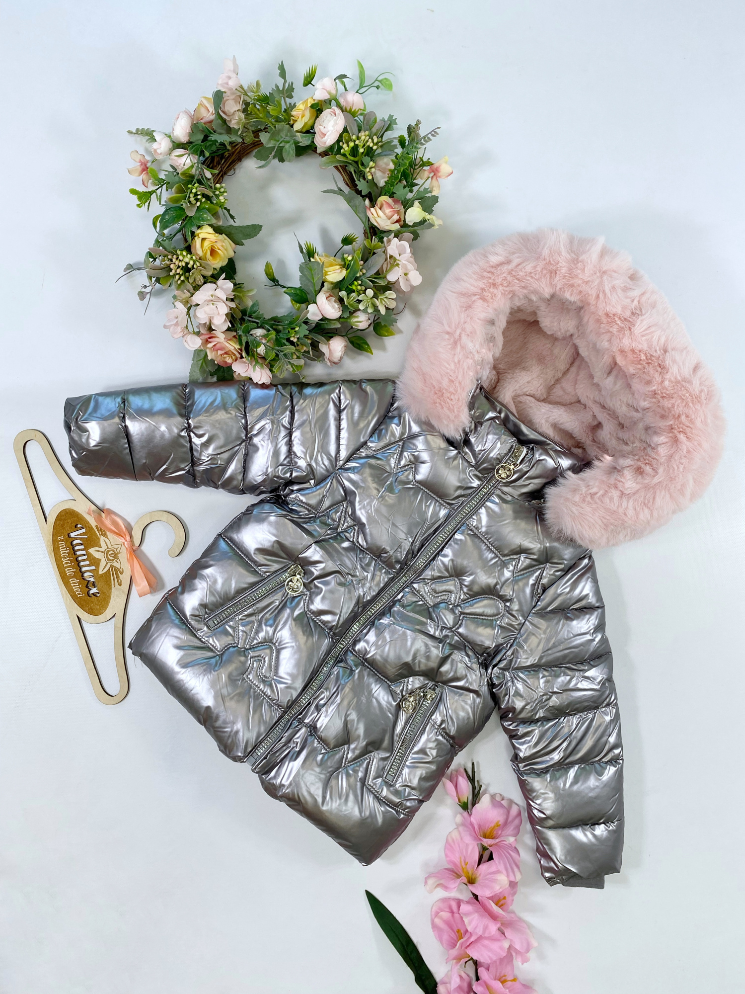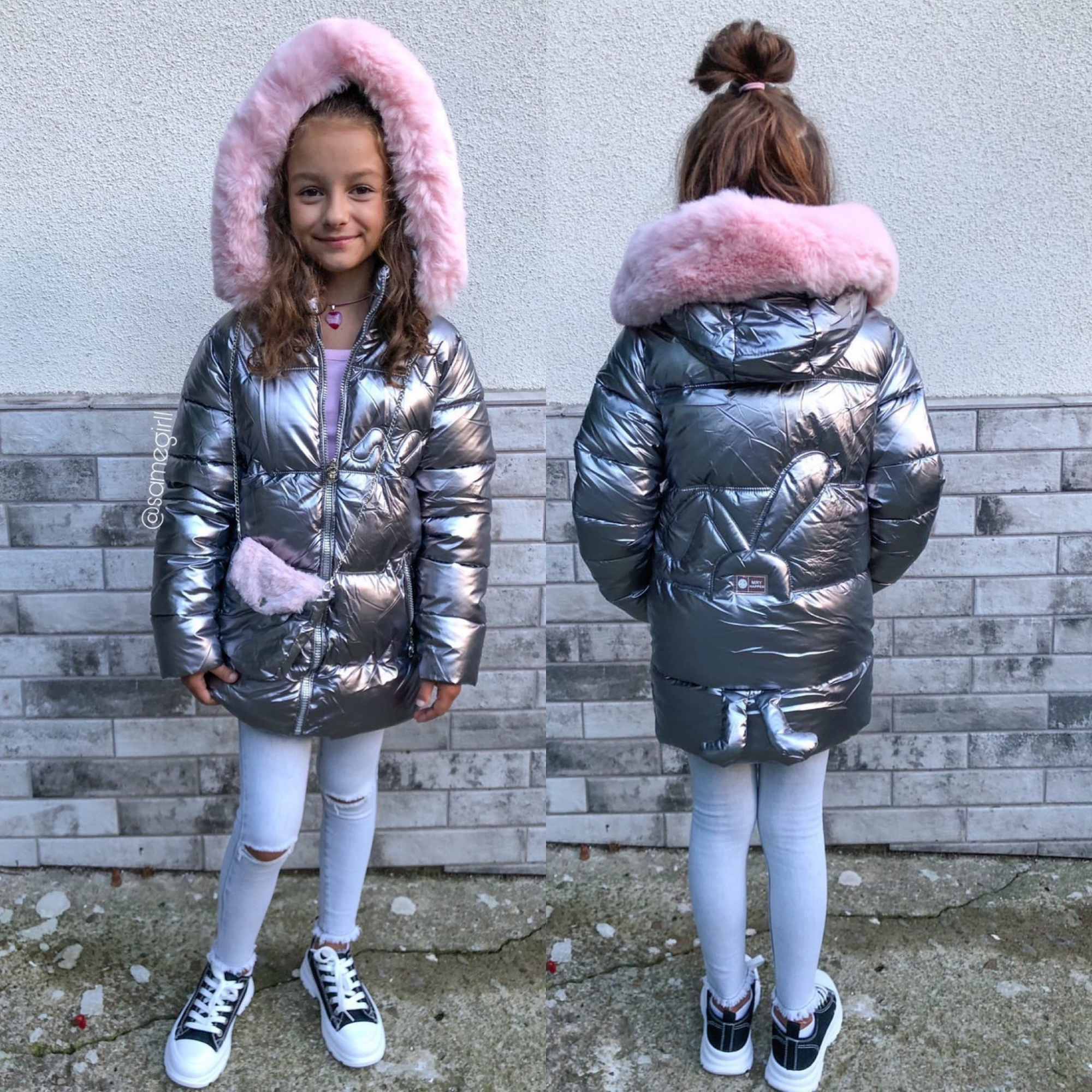 Kurtka zimowa dla dziewczynki Funny Bunny Silver