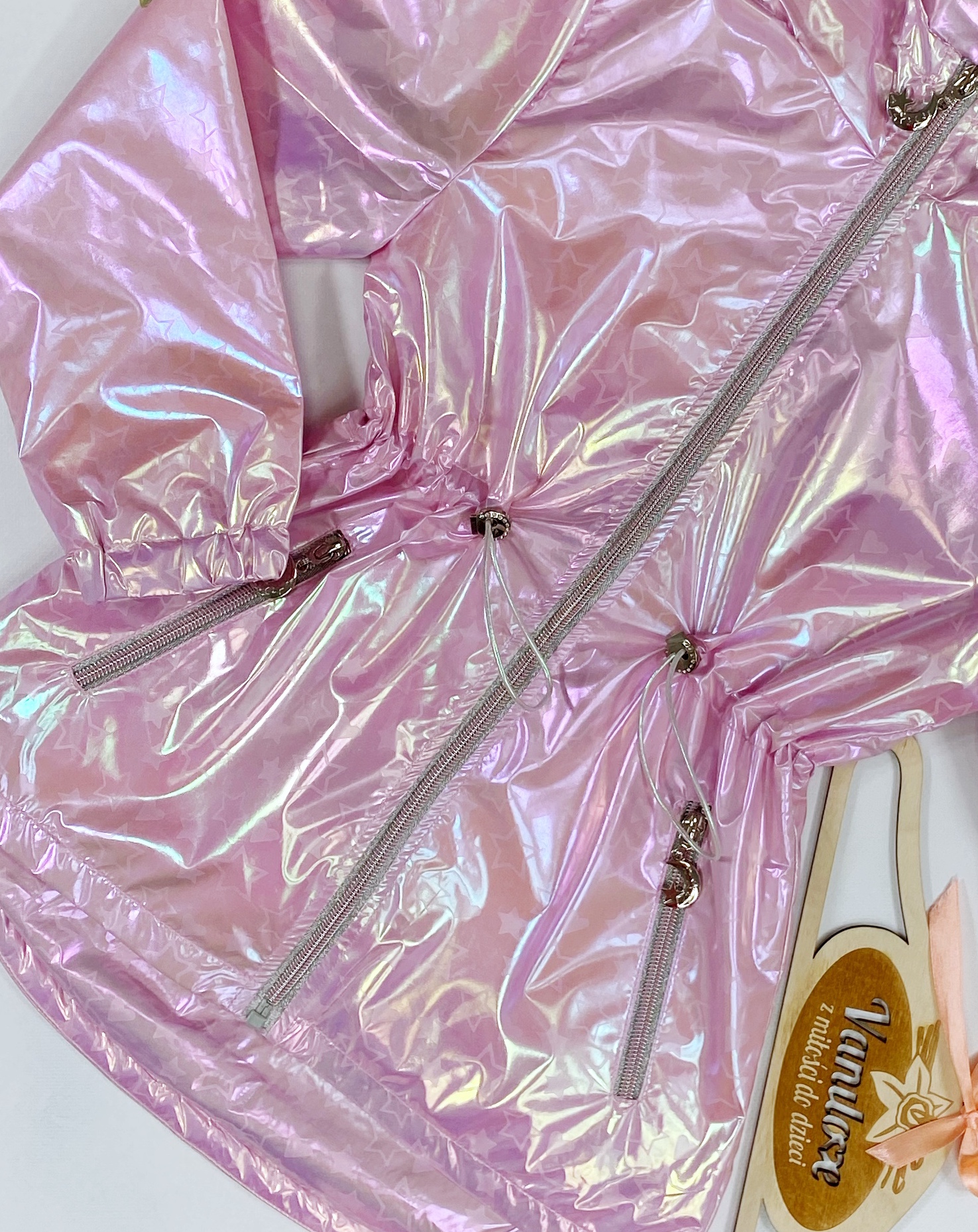 - materiał kurteczki z miękkiego i metalizującego materiału
