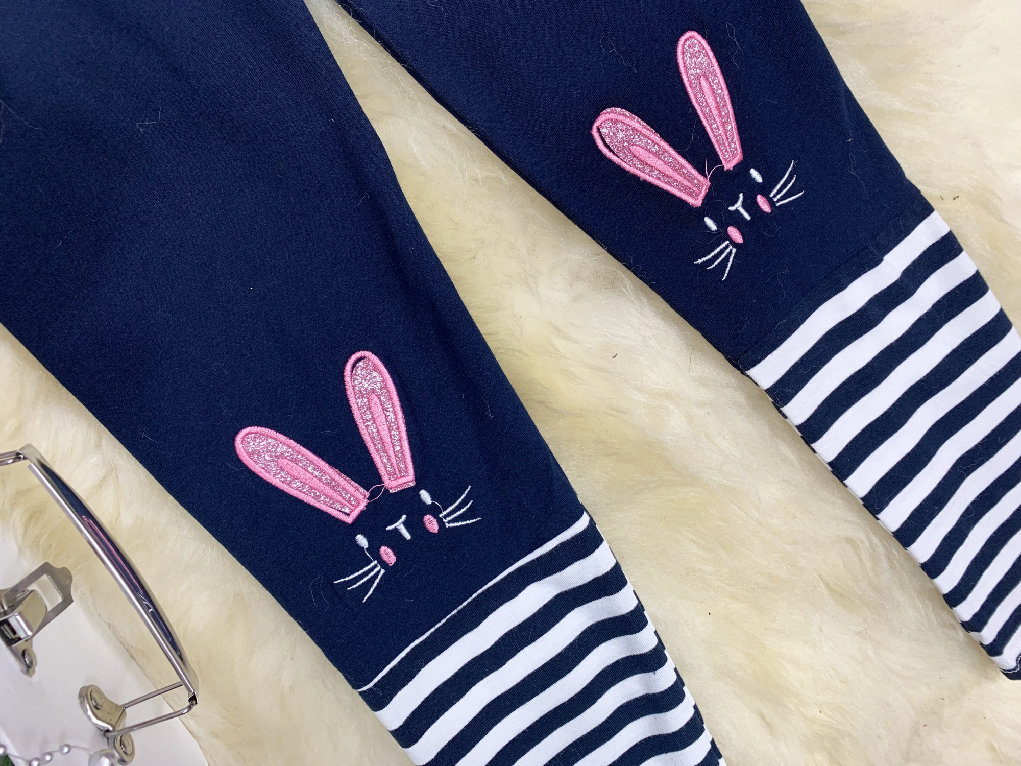 • na nogawkach naduk króliczków oraz ozdobne paski