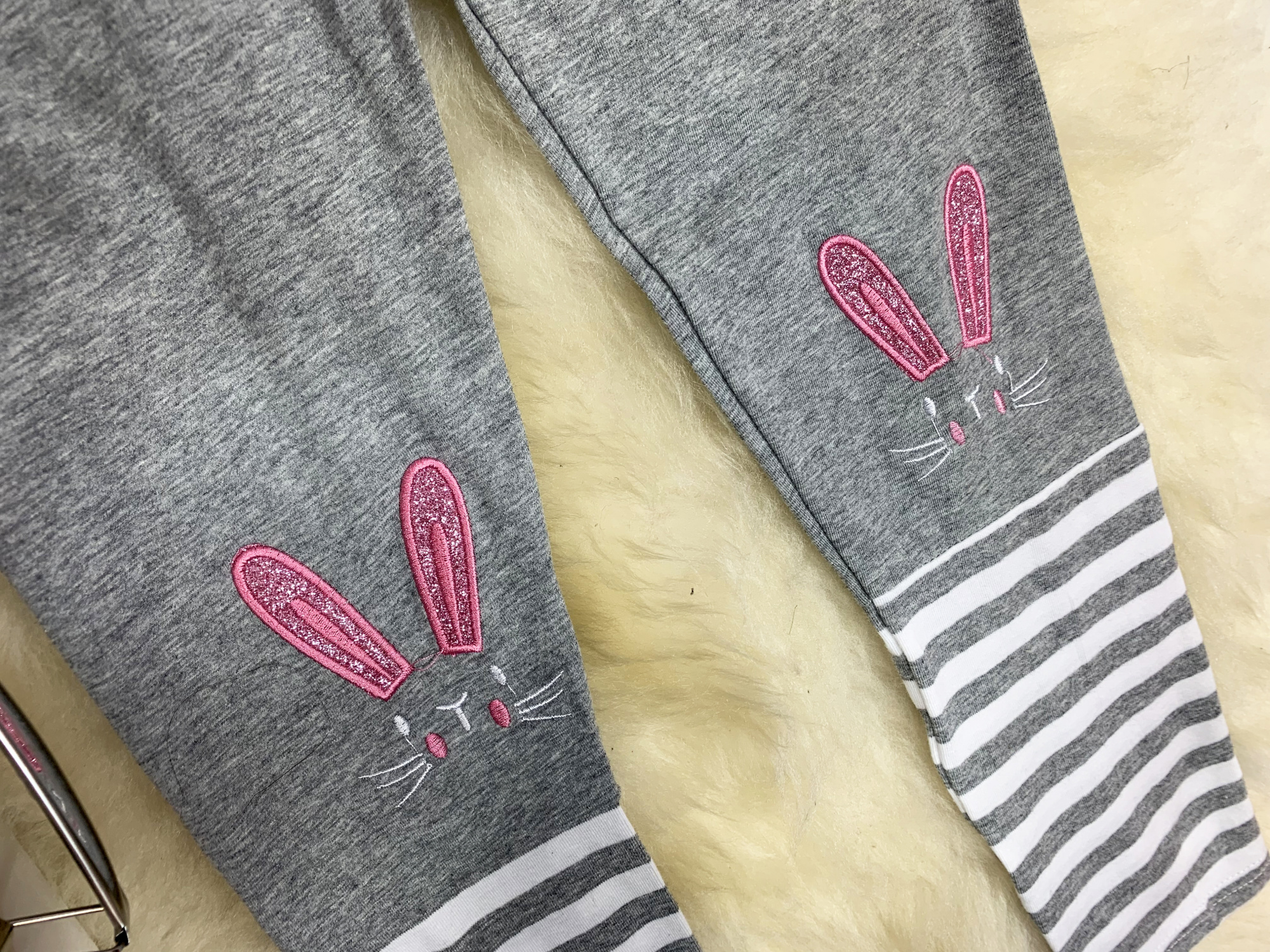 • na nogawkach naduk króliczków oraz ozdobne paski