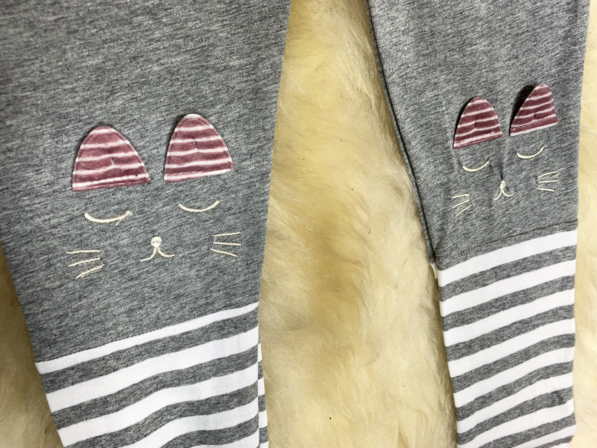 • na nogawkach naduk kotków oraz ozdobne paski