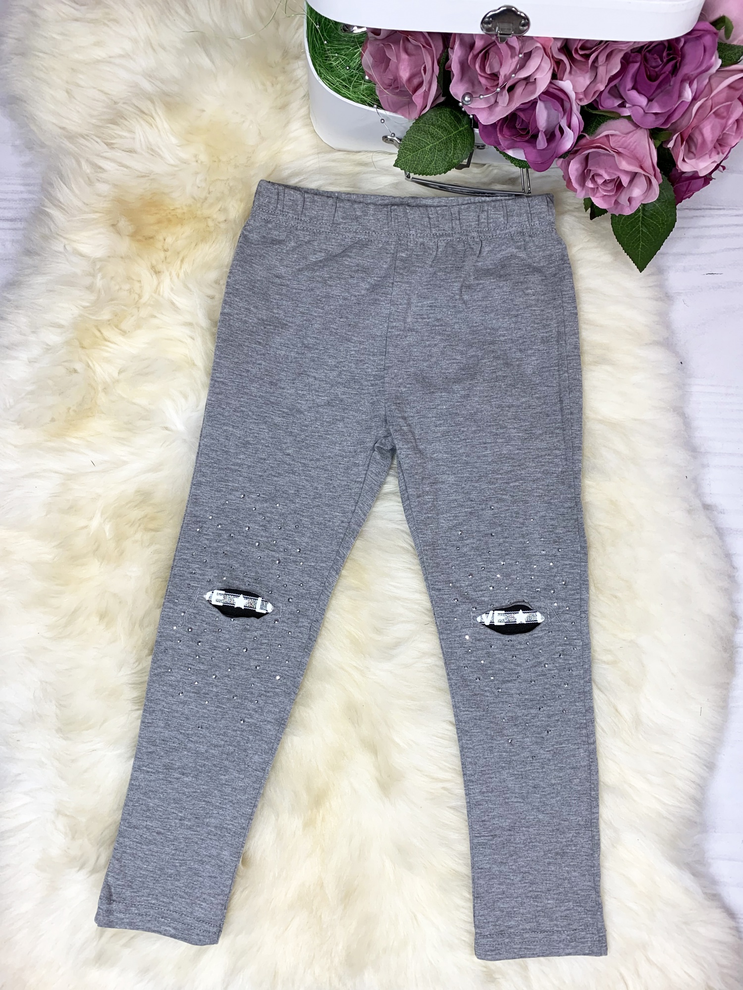 Legginsy dla Dziewczynki bawełniane rozcięcia dżety - kolor szary