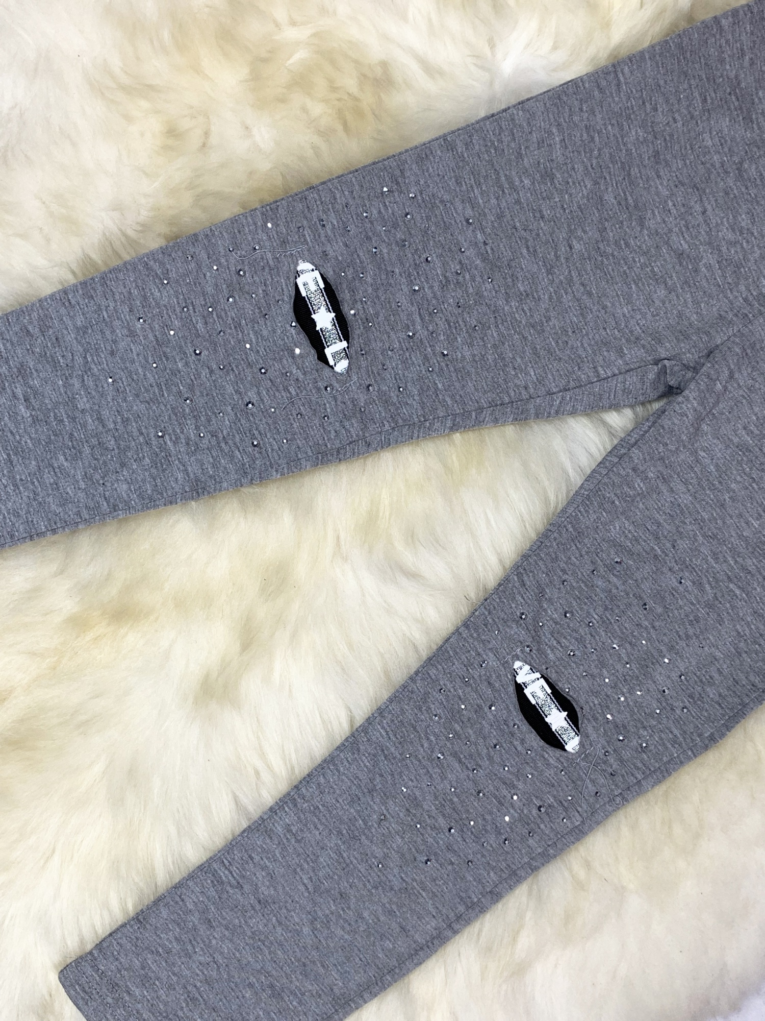 Legginsy bawełniane rozcięcia dżety - kolor szary