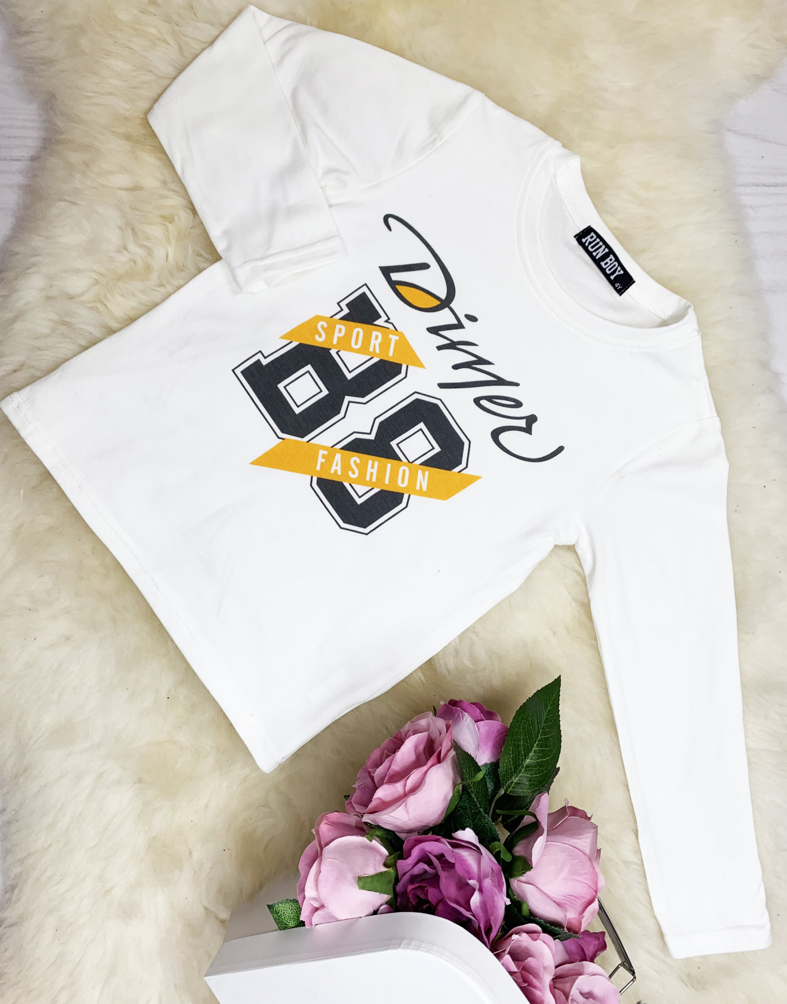 - w skład kompletu wchodzi: bluza z kapturem i spodnie dresowe oraz bluzka z długim rękawem