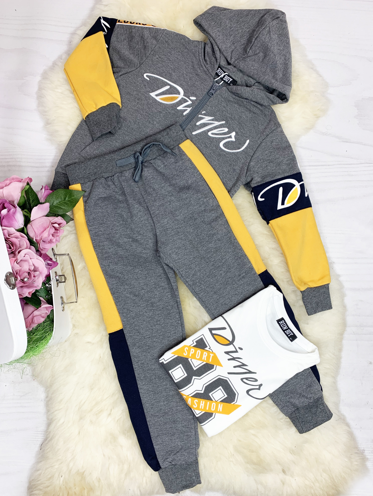 New 3 częściowy komplet - szary + musztarda