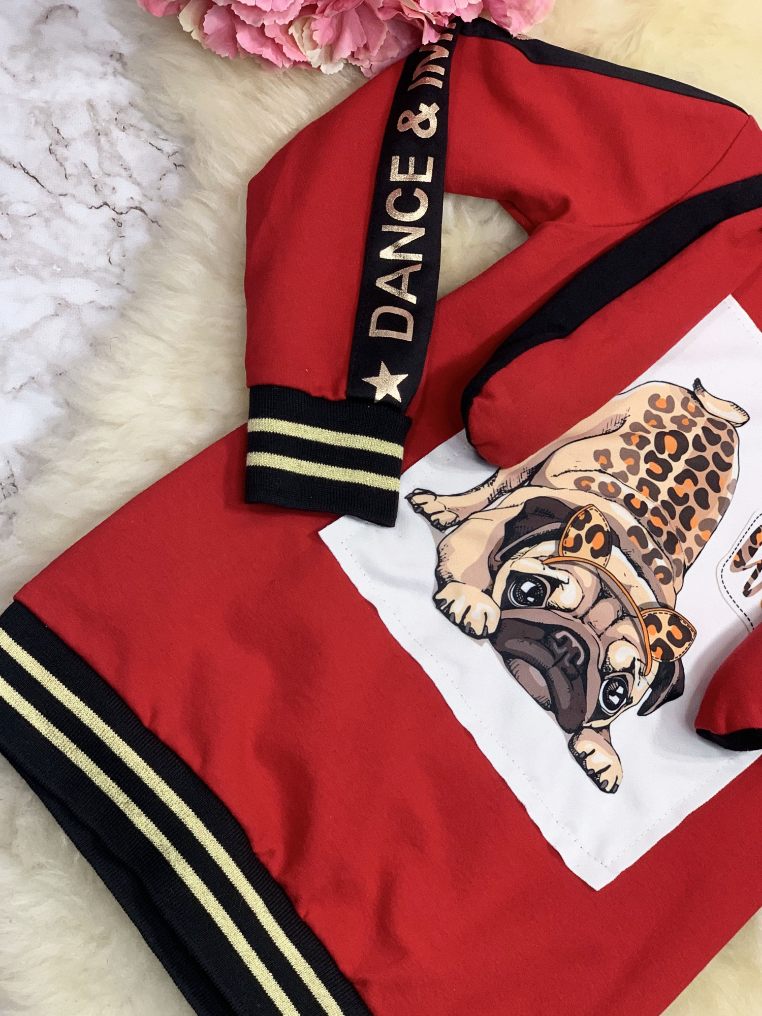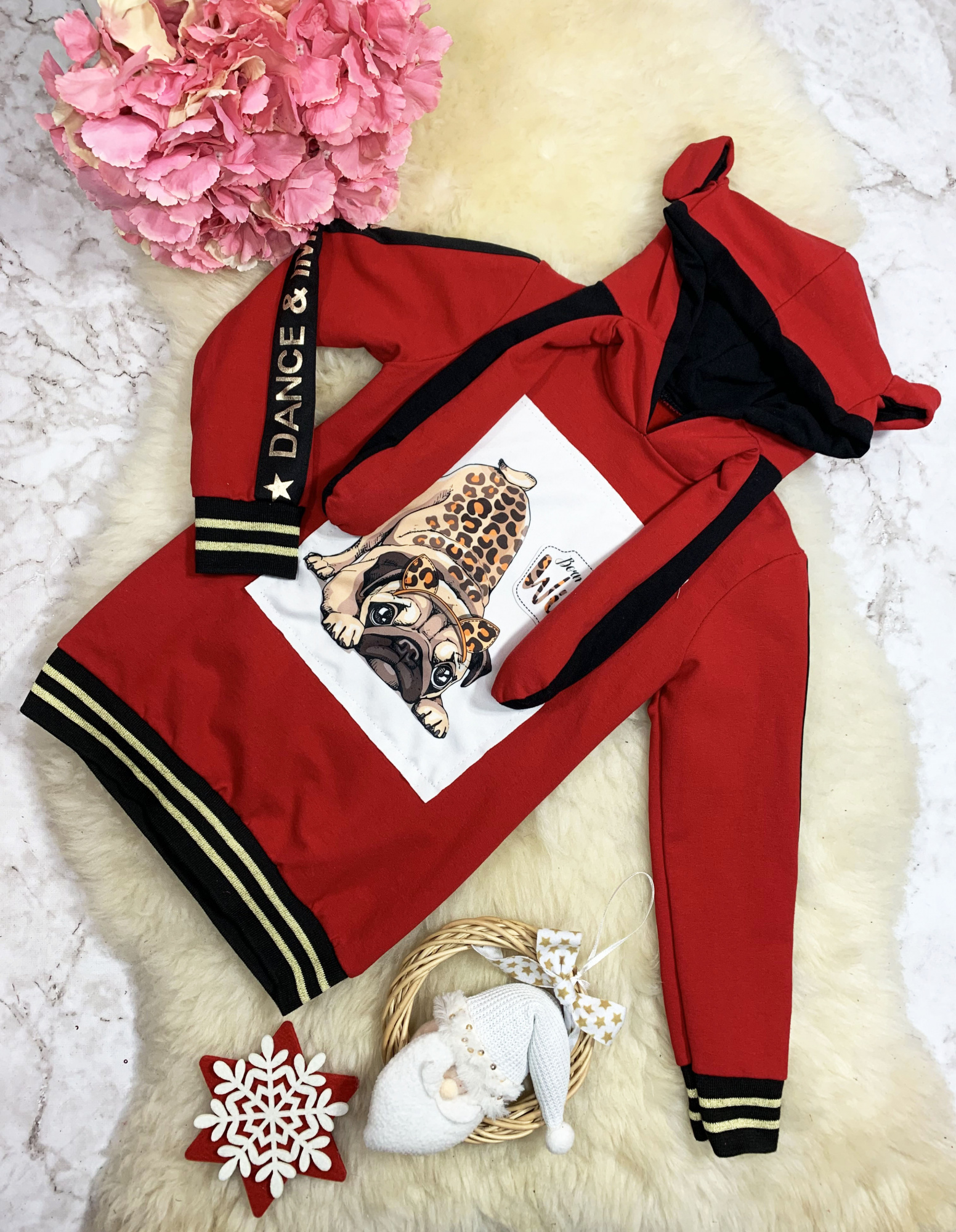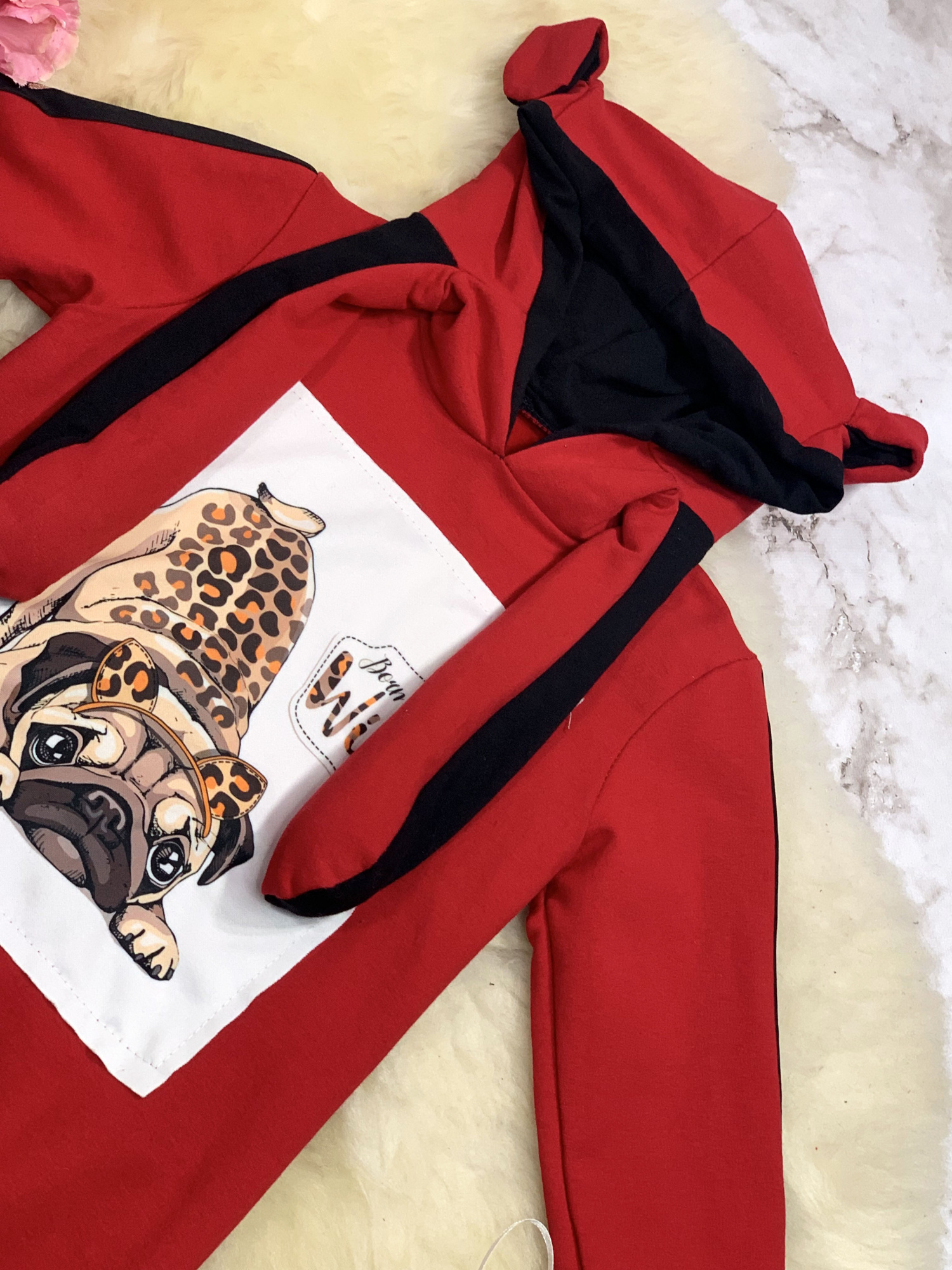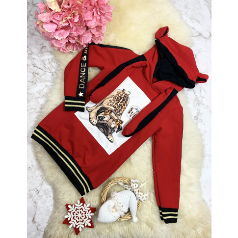 Ocieplana Bluza dla Dziewczynki Mops Wild - magiczne uszy czerwony