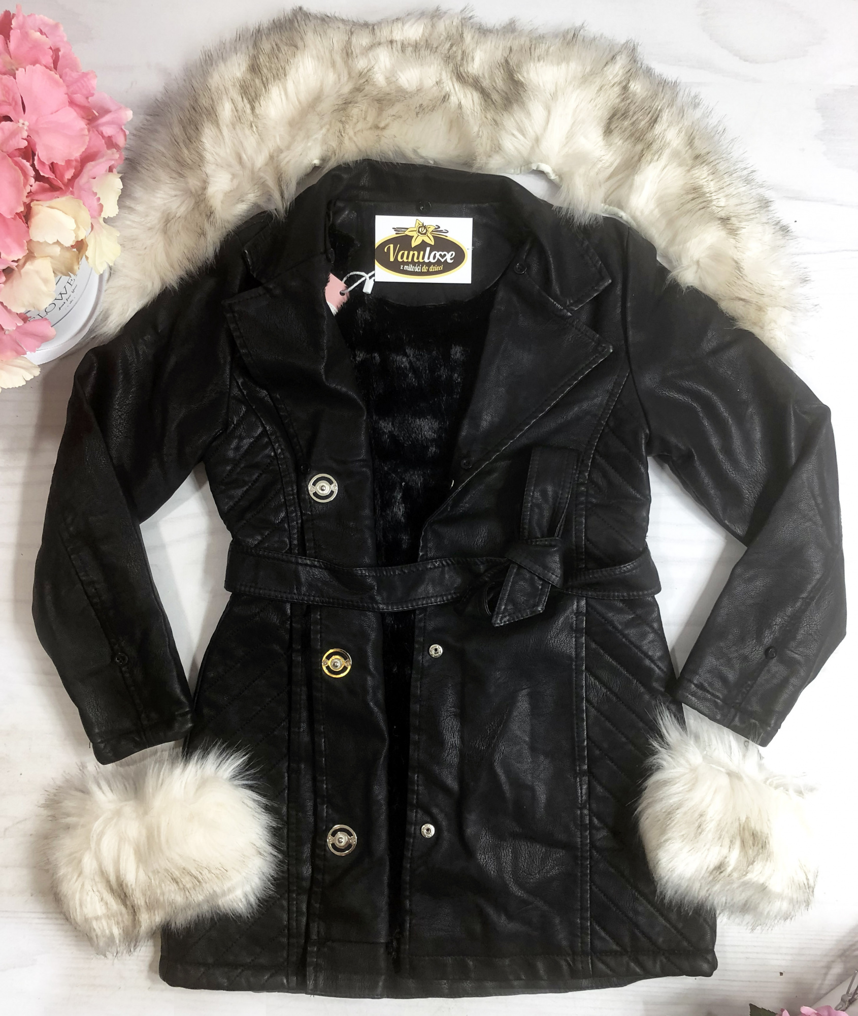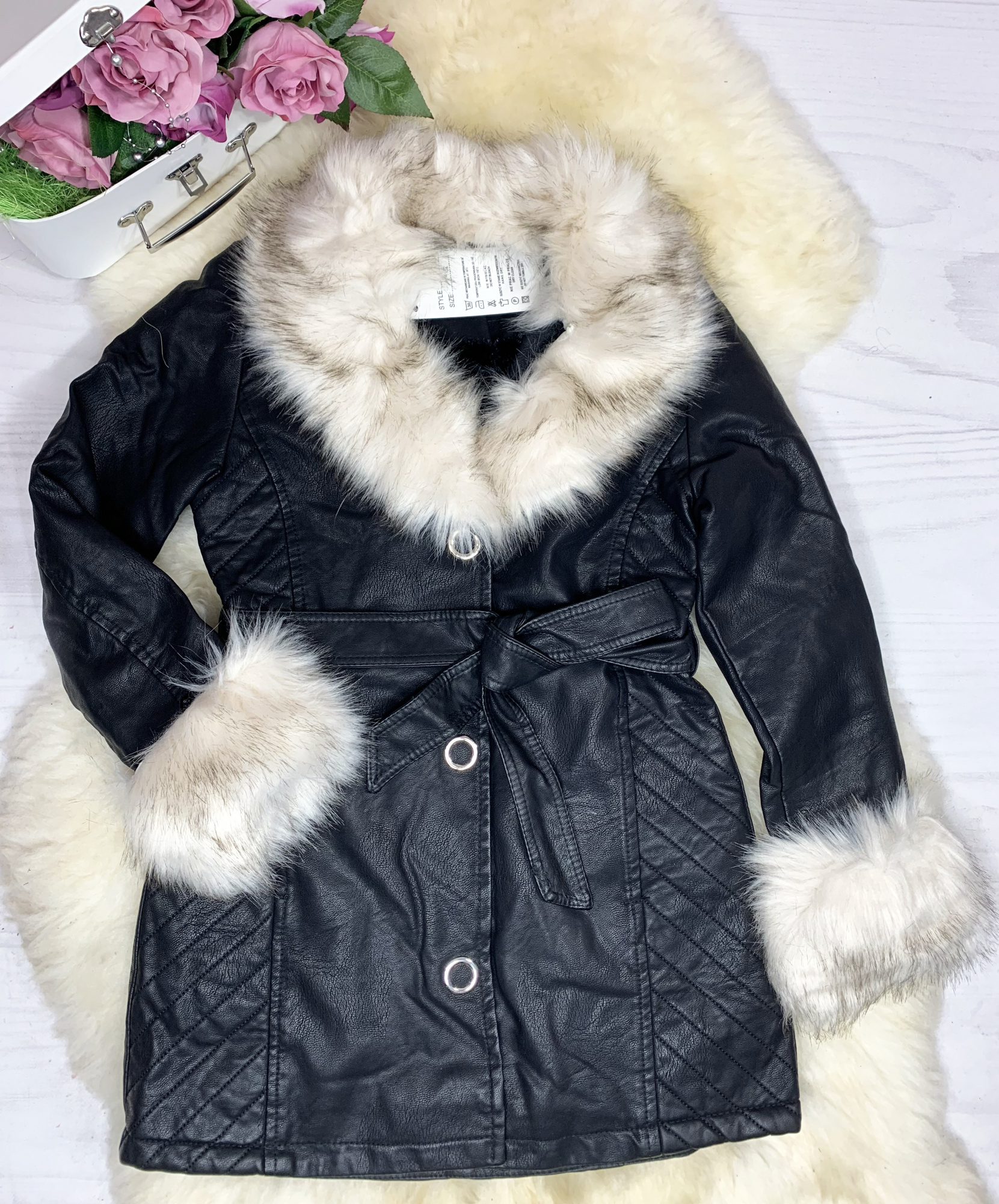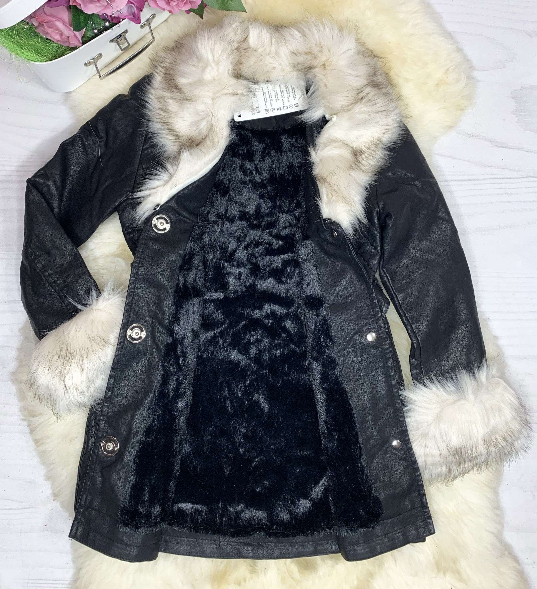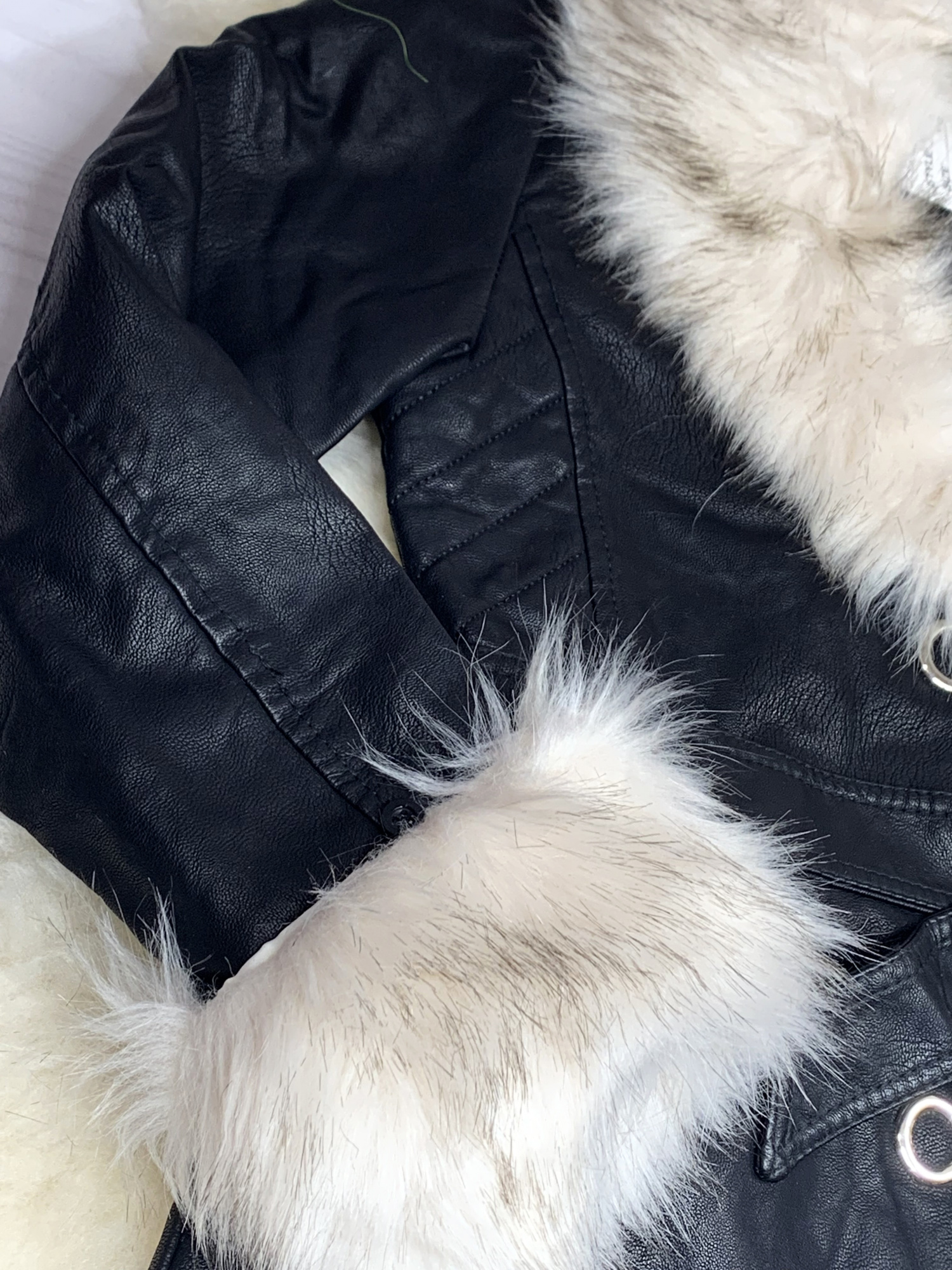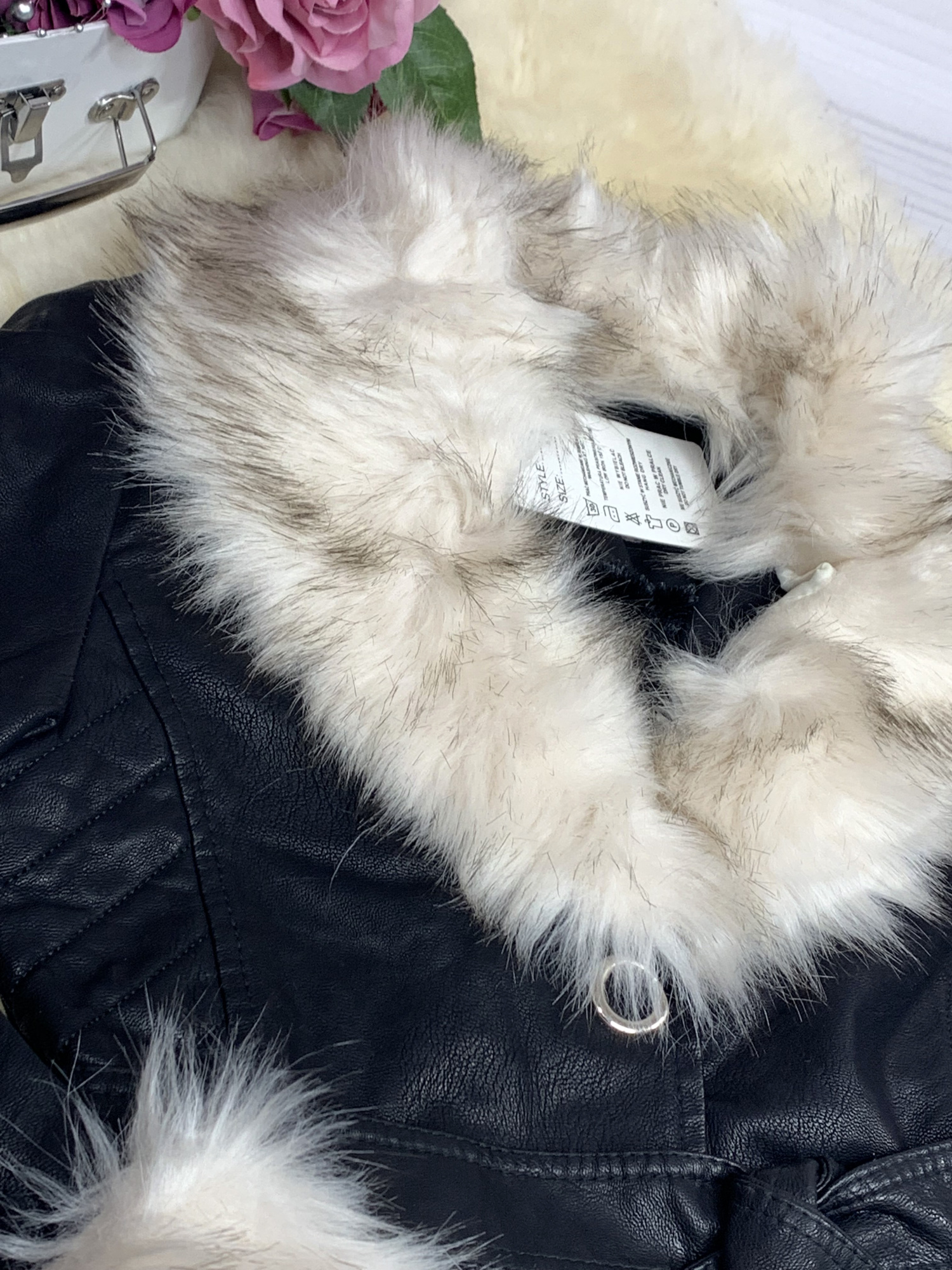 Płaszcz Black Fame z ekoskórki - HIT - z futerkiem
