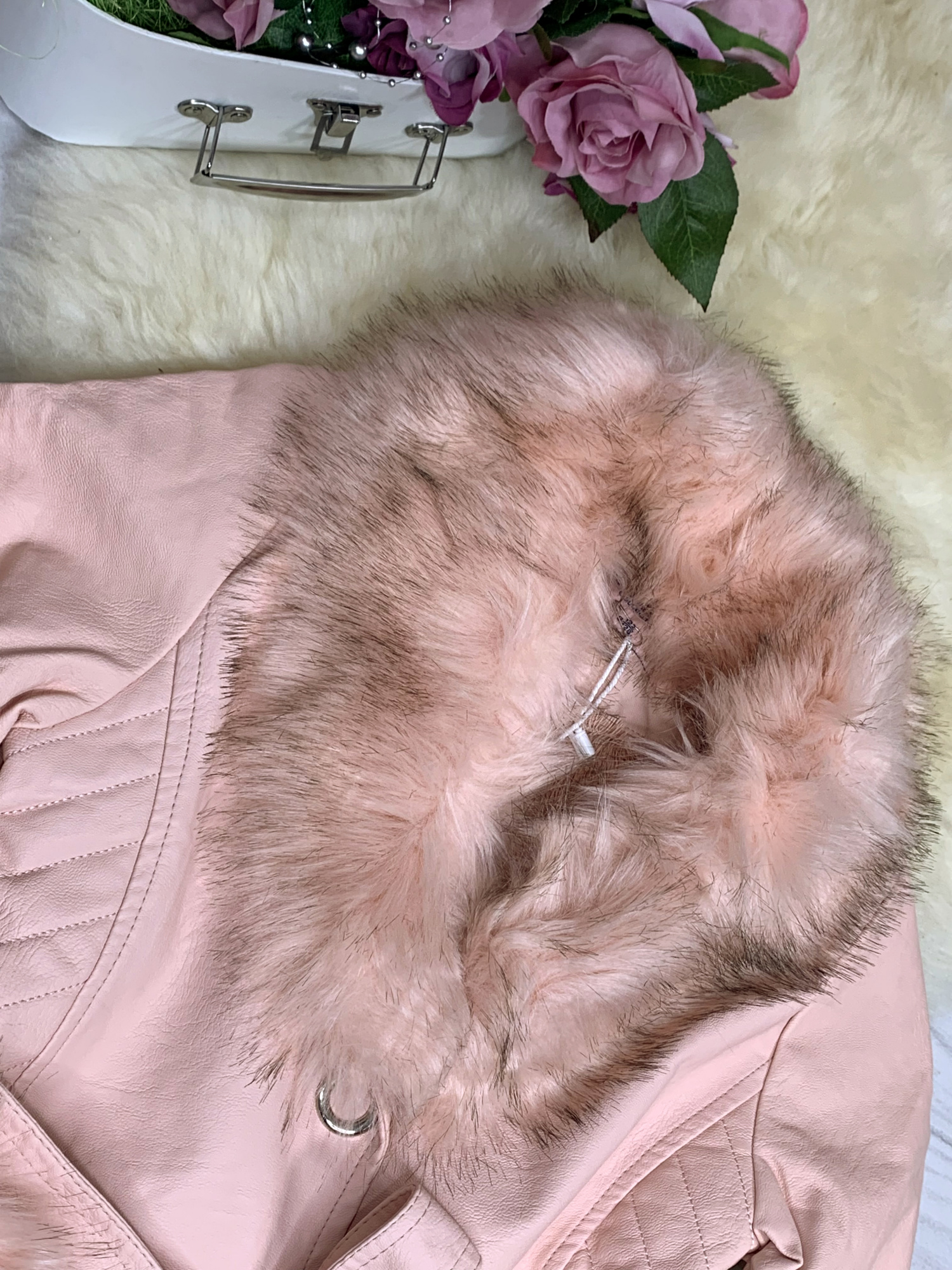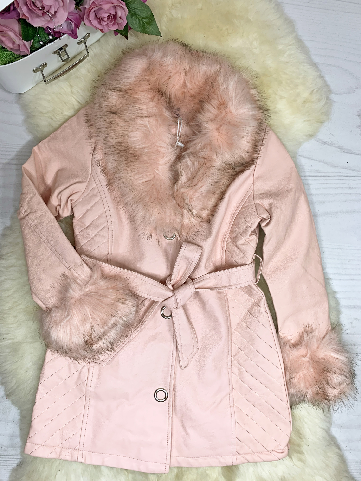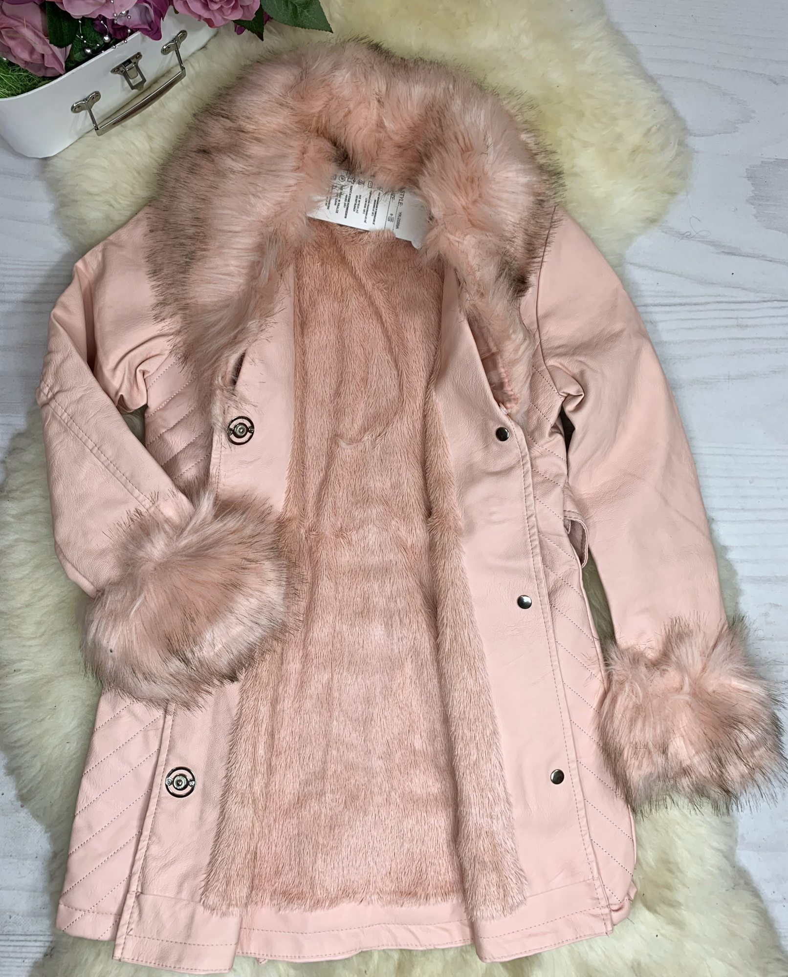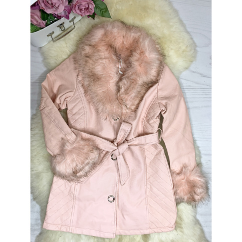 Płaszcz Pink Fame z ekoskórki - HIT - z futerkiem