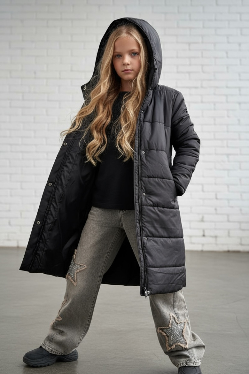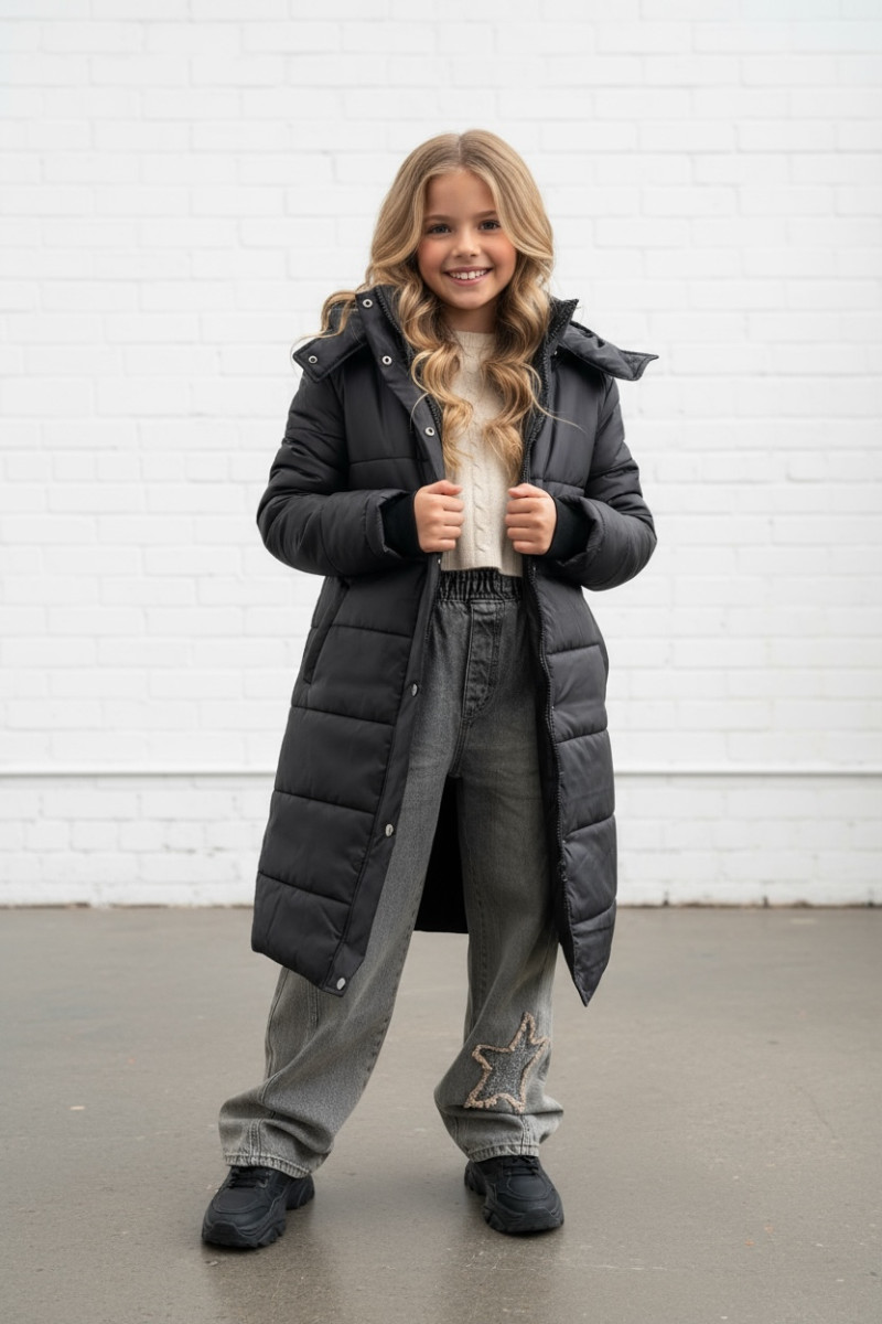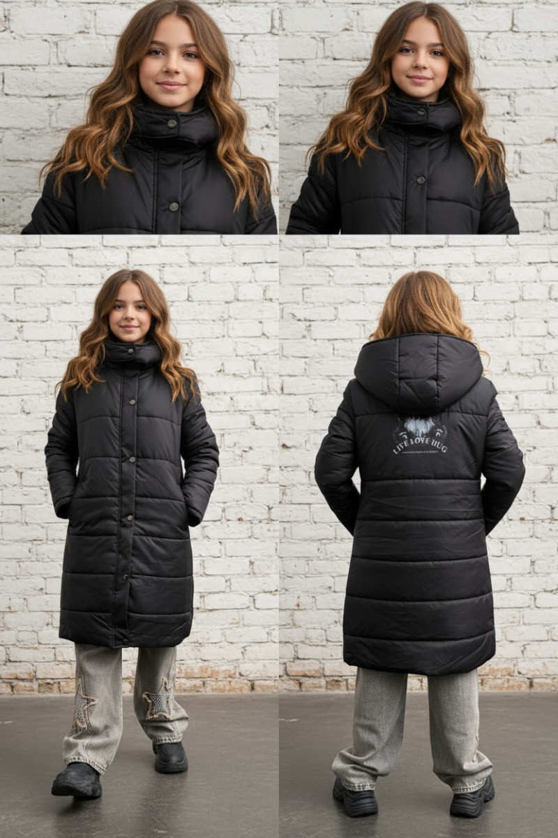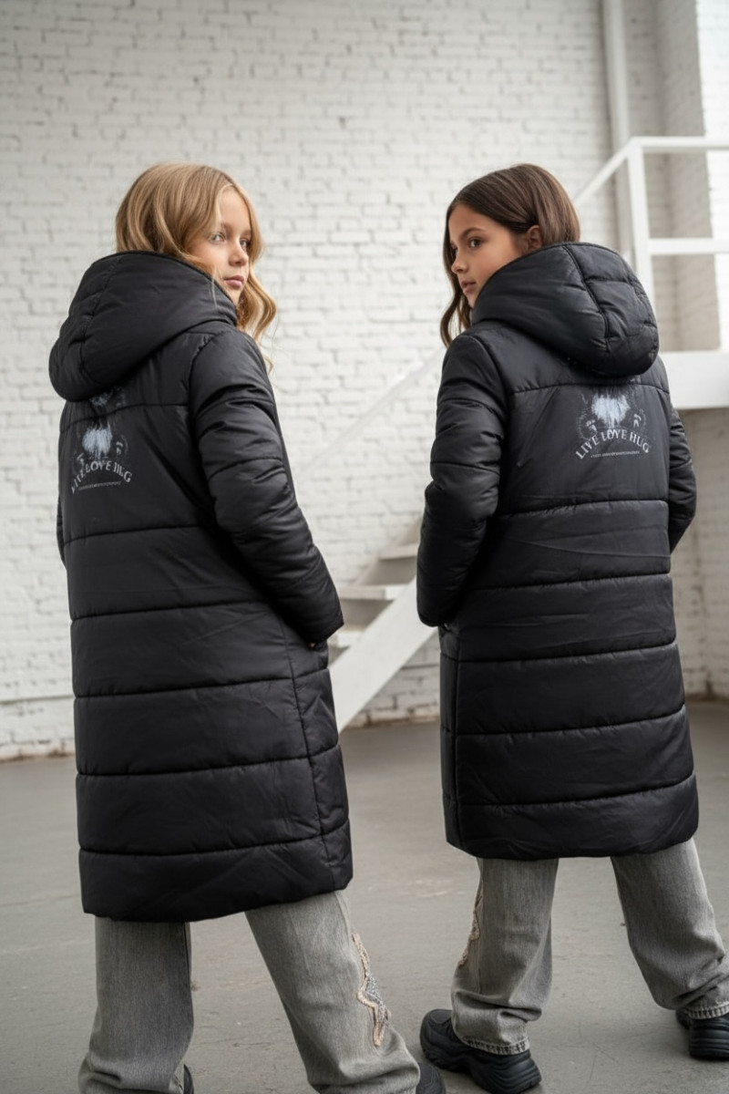 • płaszczyk jest w kolorze czarnym i uroczym nadrukiem misia oraz napisem "LIVE LOVE HUG"
