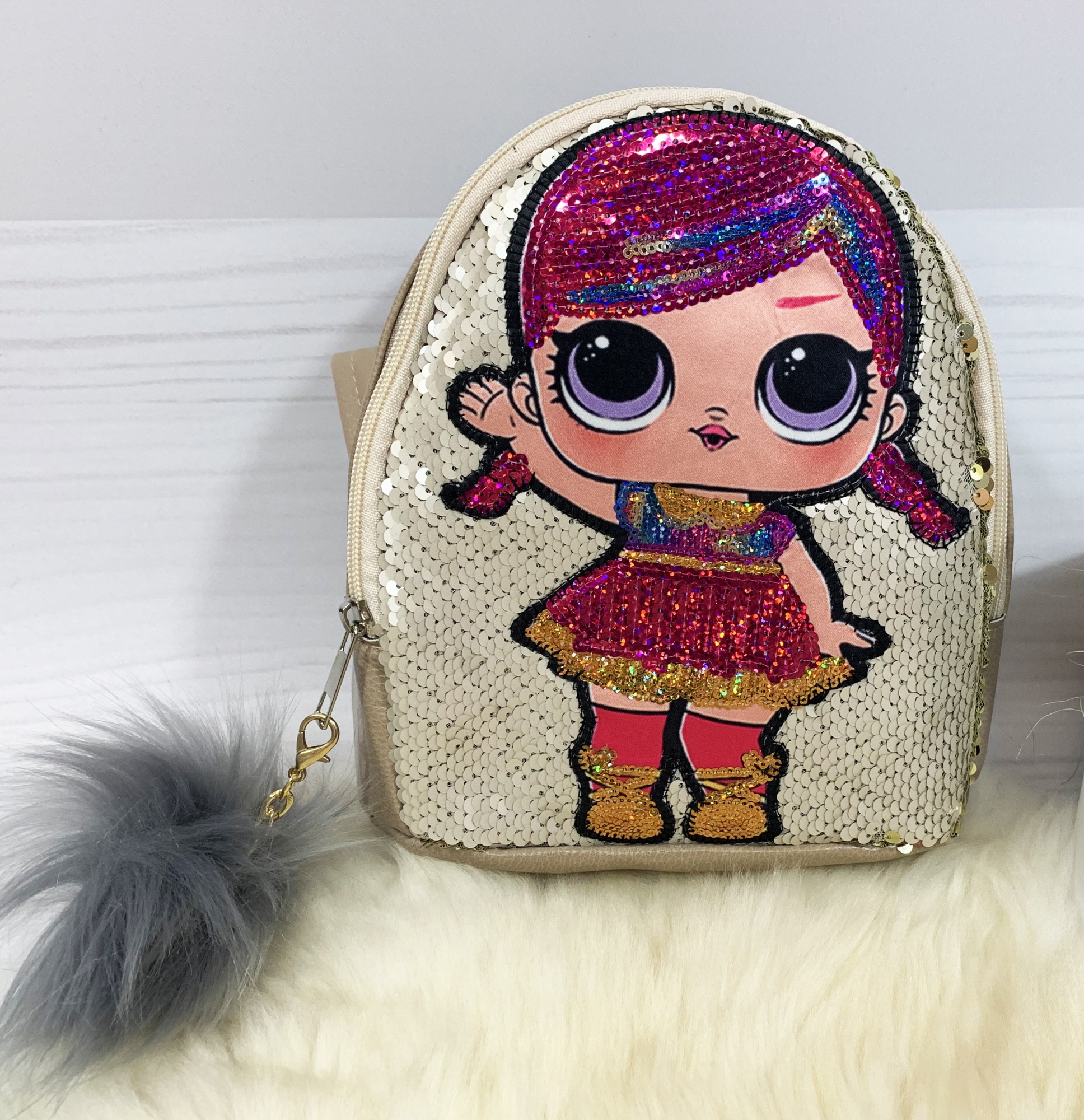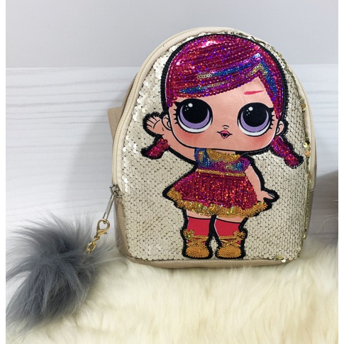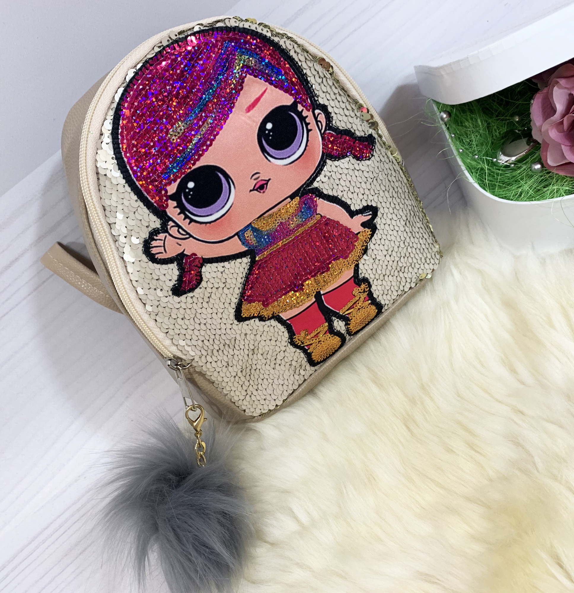 • plecaczek obszyty cekinami oraz ozdobiony aplikacją bohaterki bajkowej LOL