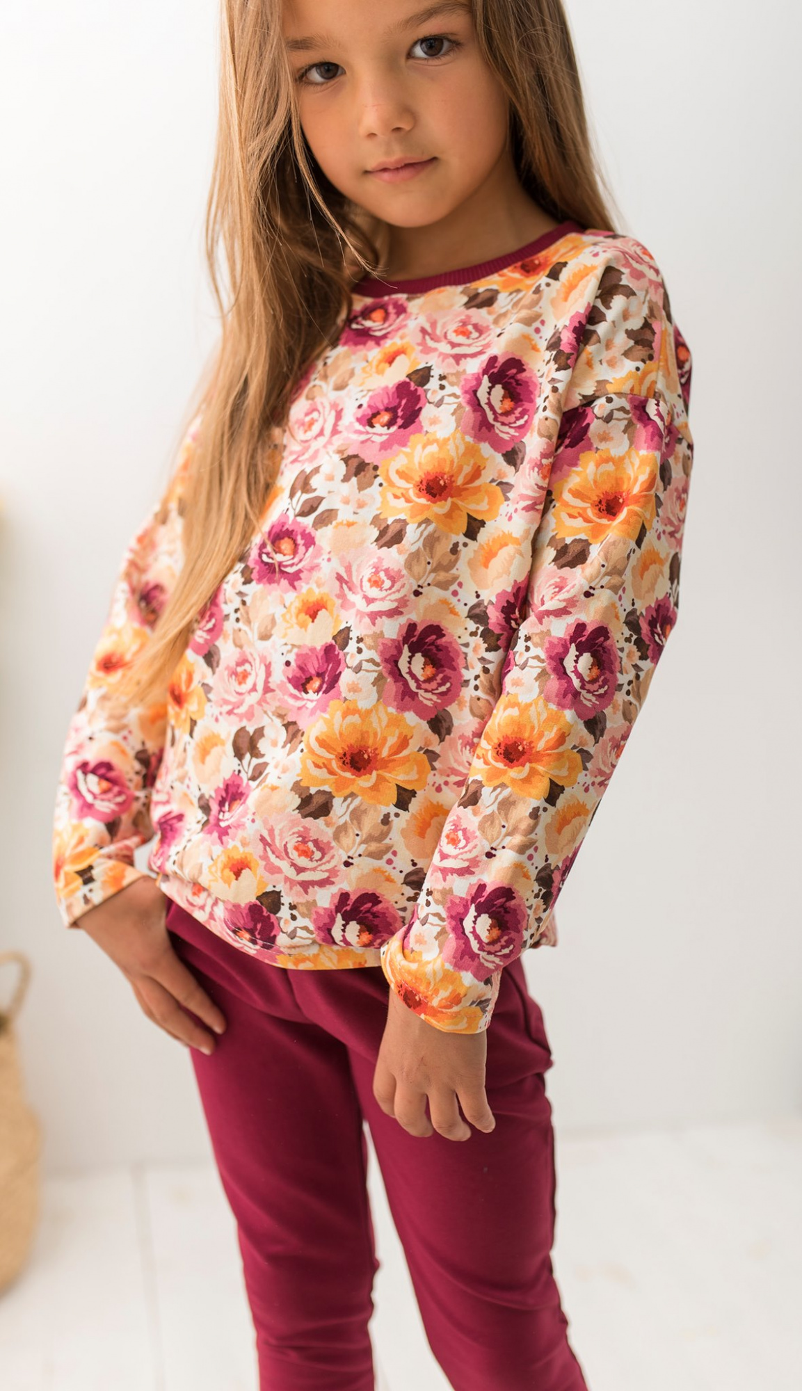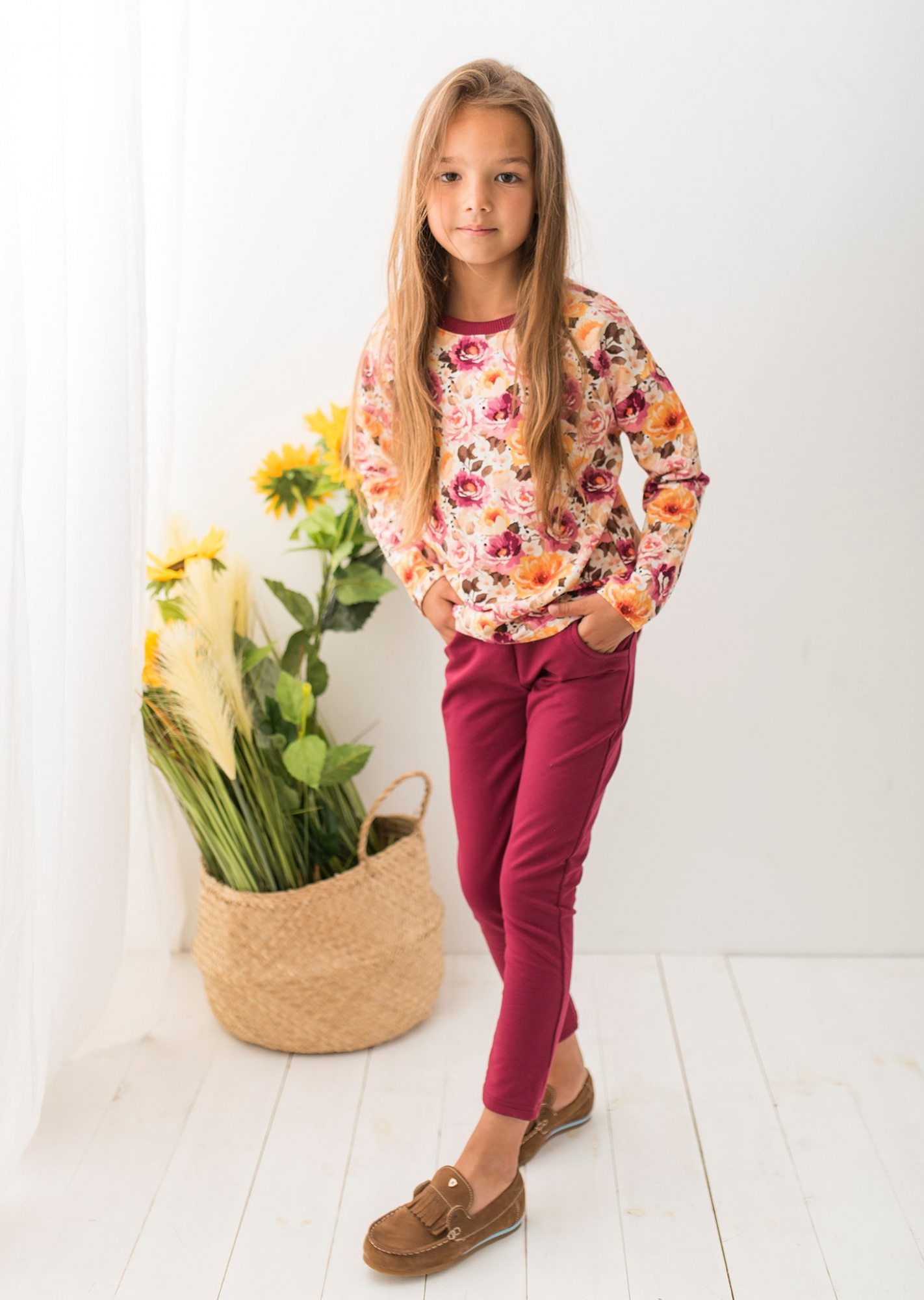 - bluza w kwiatwym princie spodnie w kolorze jednolitym
