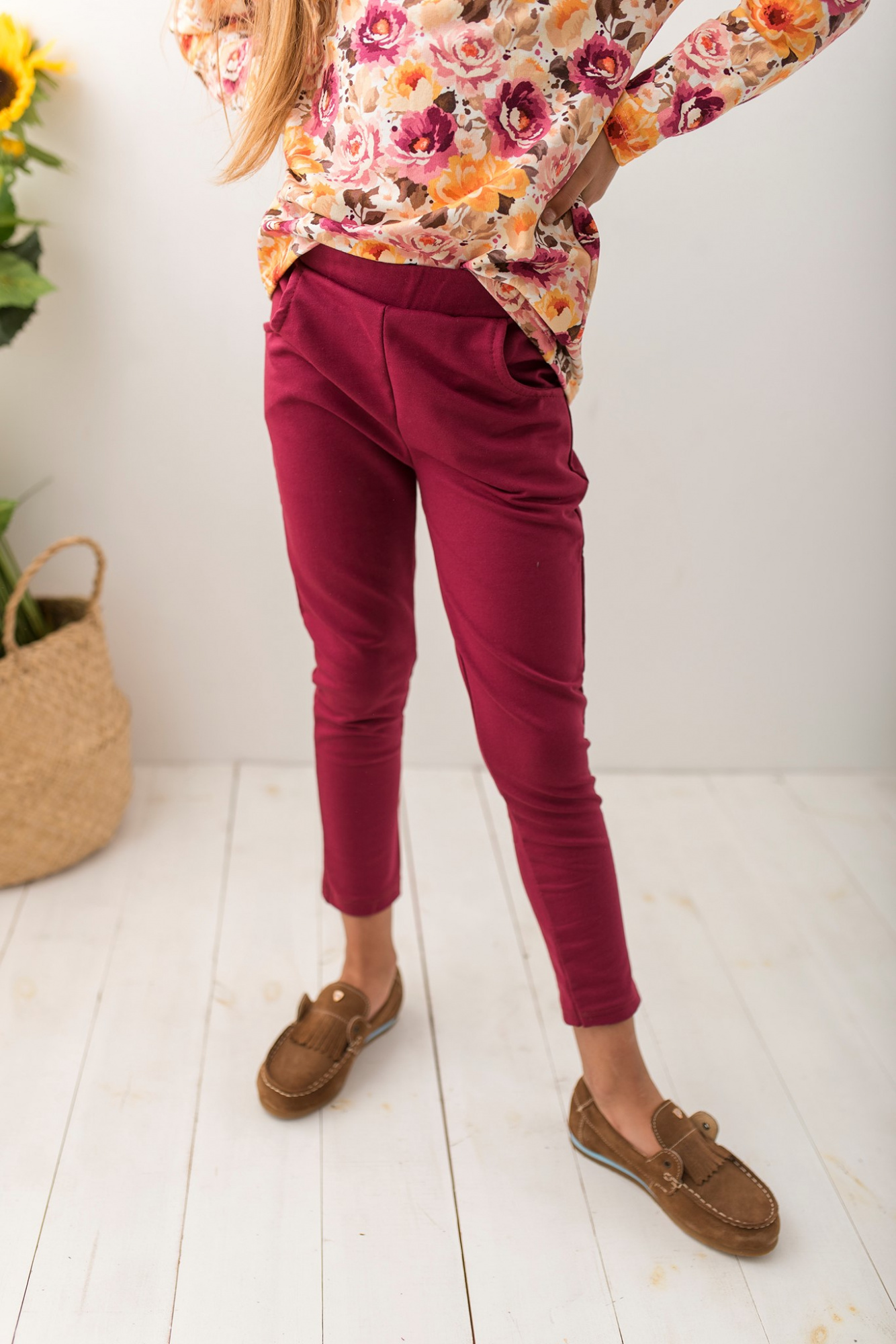 - spodnie na gumce z kieszonkami z boku, po boku łańcuch oraz urocza naszywka