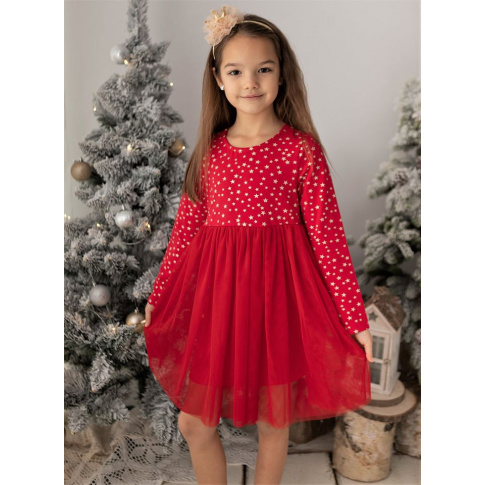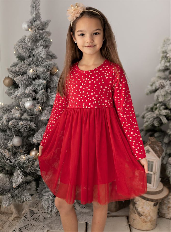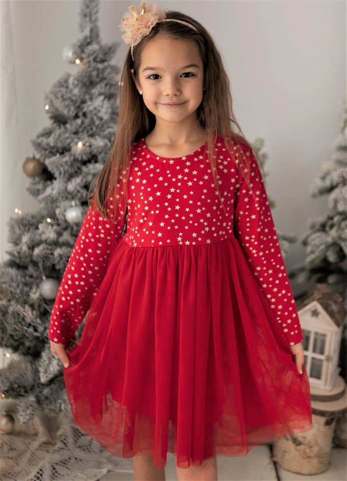 Premium Bawełna Sukienka Dziewczęca Stars - Czerwony