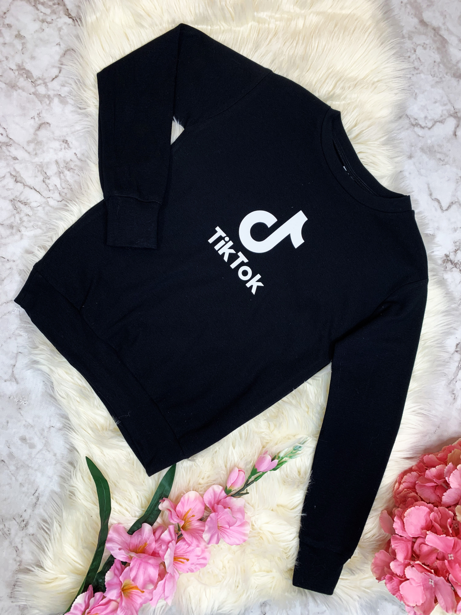 • klasyczny model bluzy z modnym nadrukiem Tik Tok
