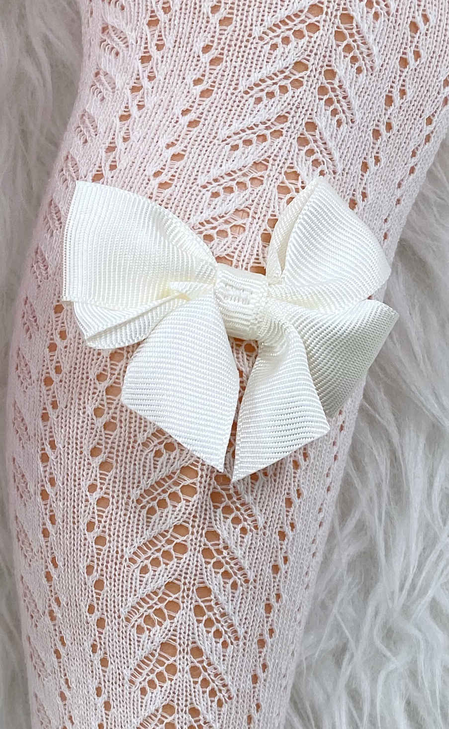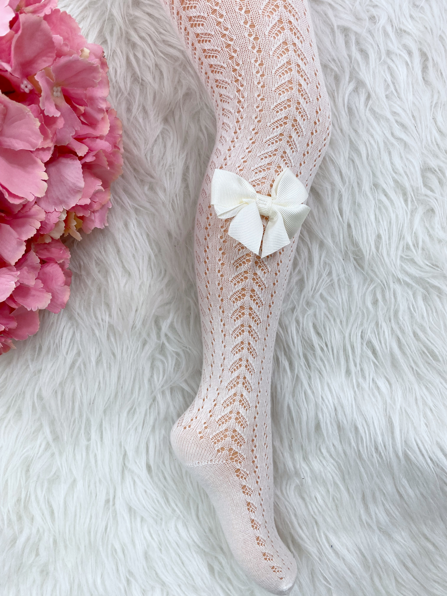 • ażurowe rajstopki, ozdobione na dole uroczą kokardką