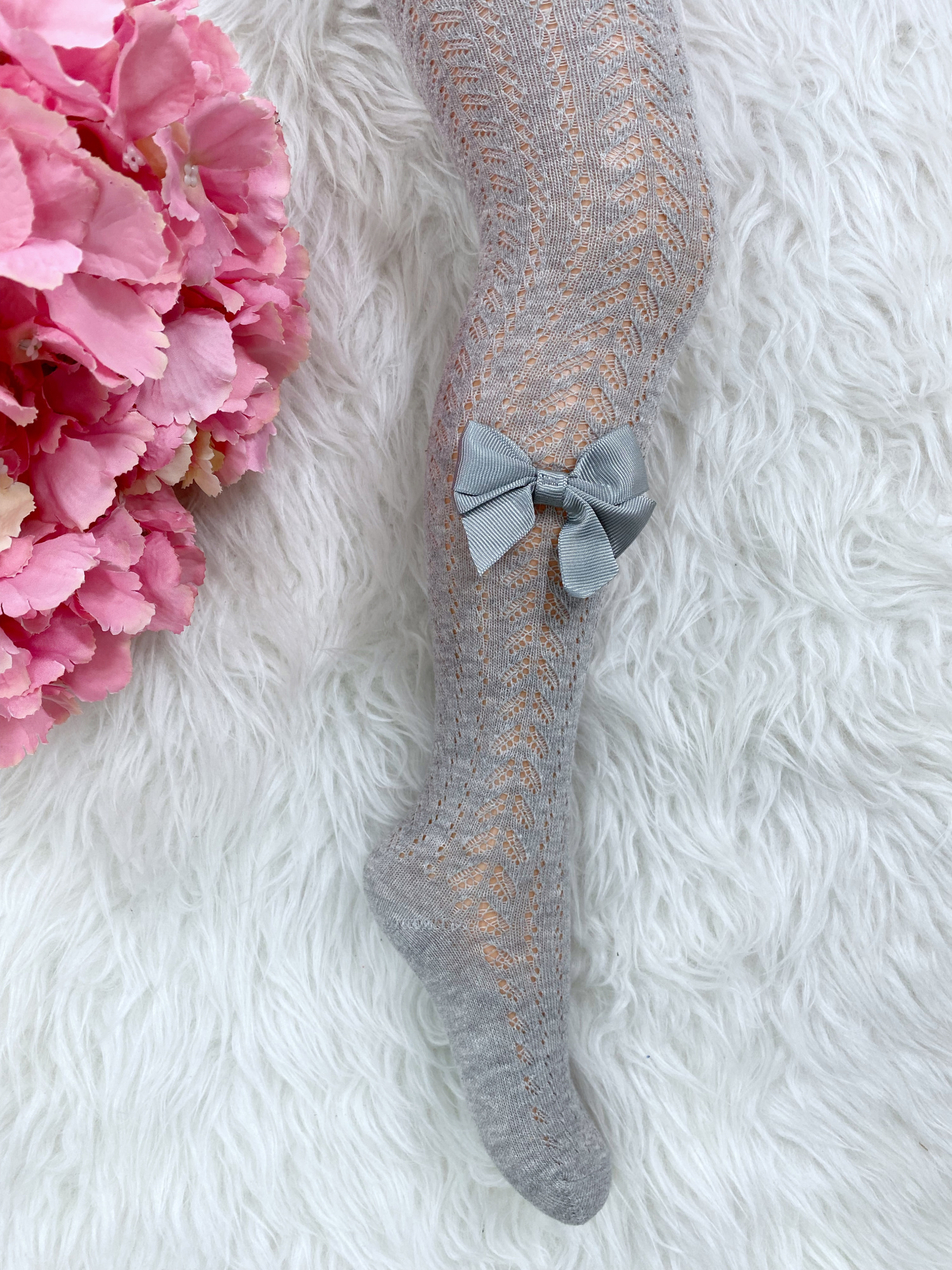 • ażurowe rajstopki, ozdobione na dole uroczą kokardką