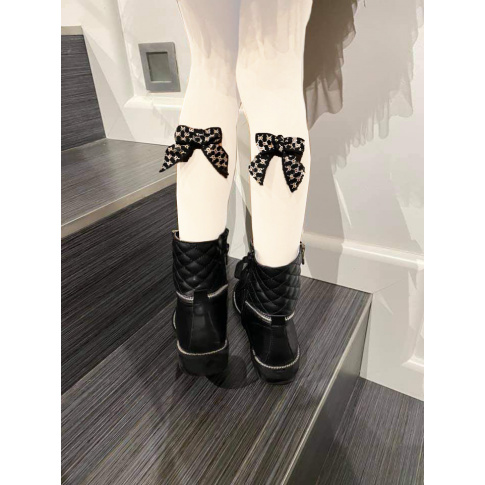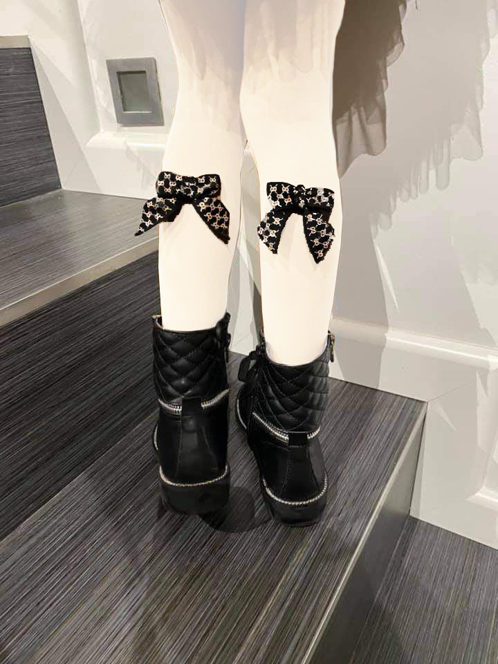 • kryjące rajstopki, ozdobione na dole uroczą kokardką z modnym motywem