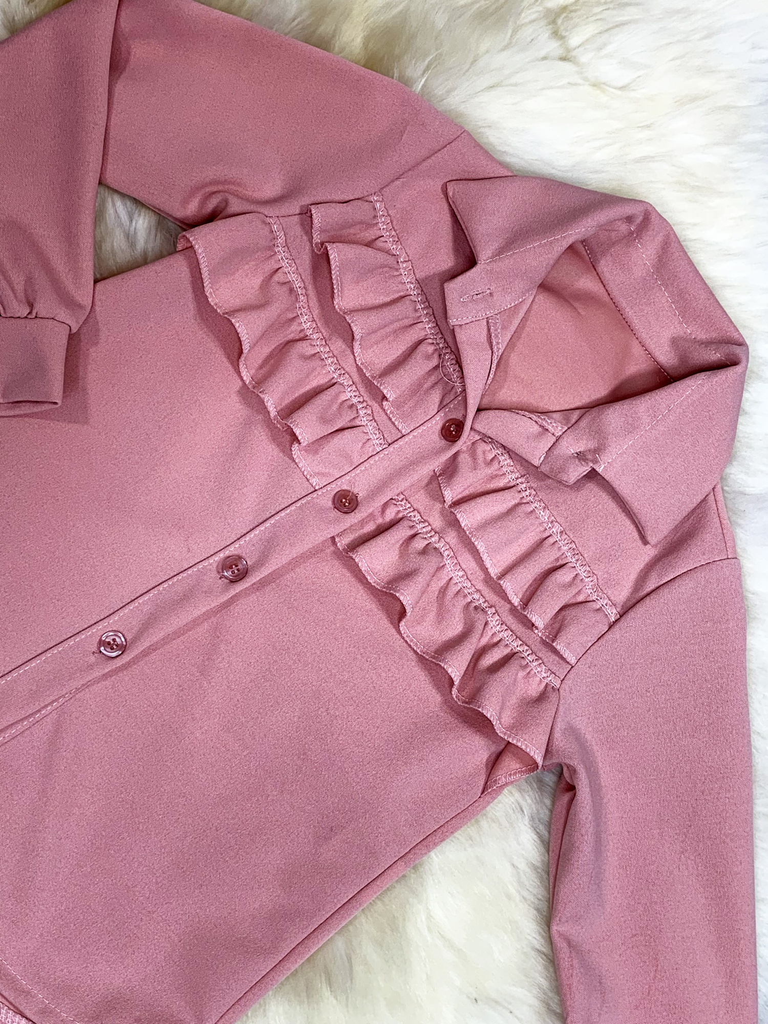 Śliczna koszula z falbankami - kolor pudrowy róż