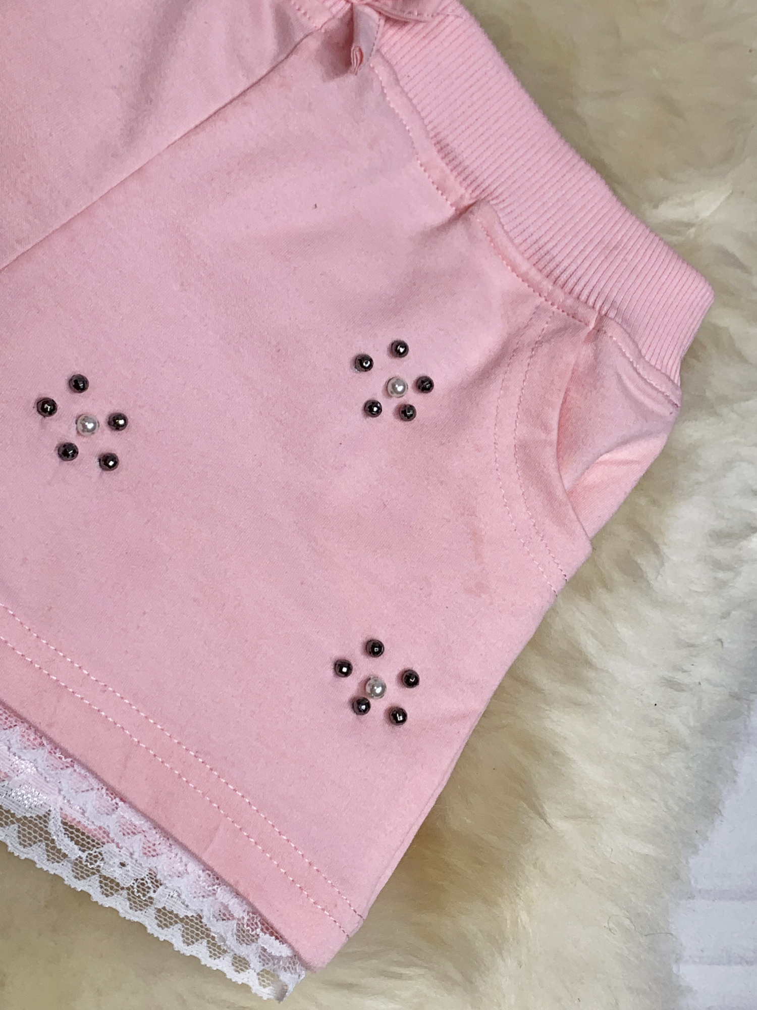 • ozdonione perełkami oraz nogawki wykończone koronką