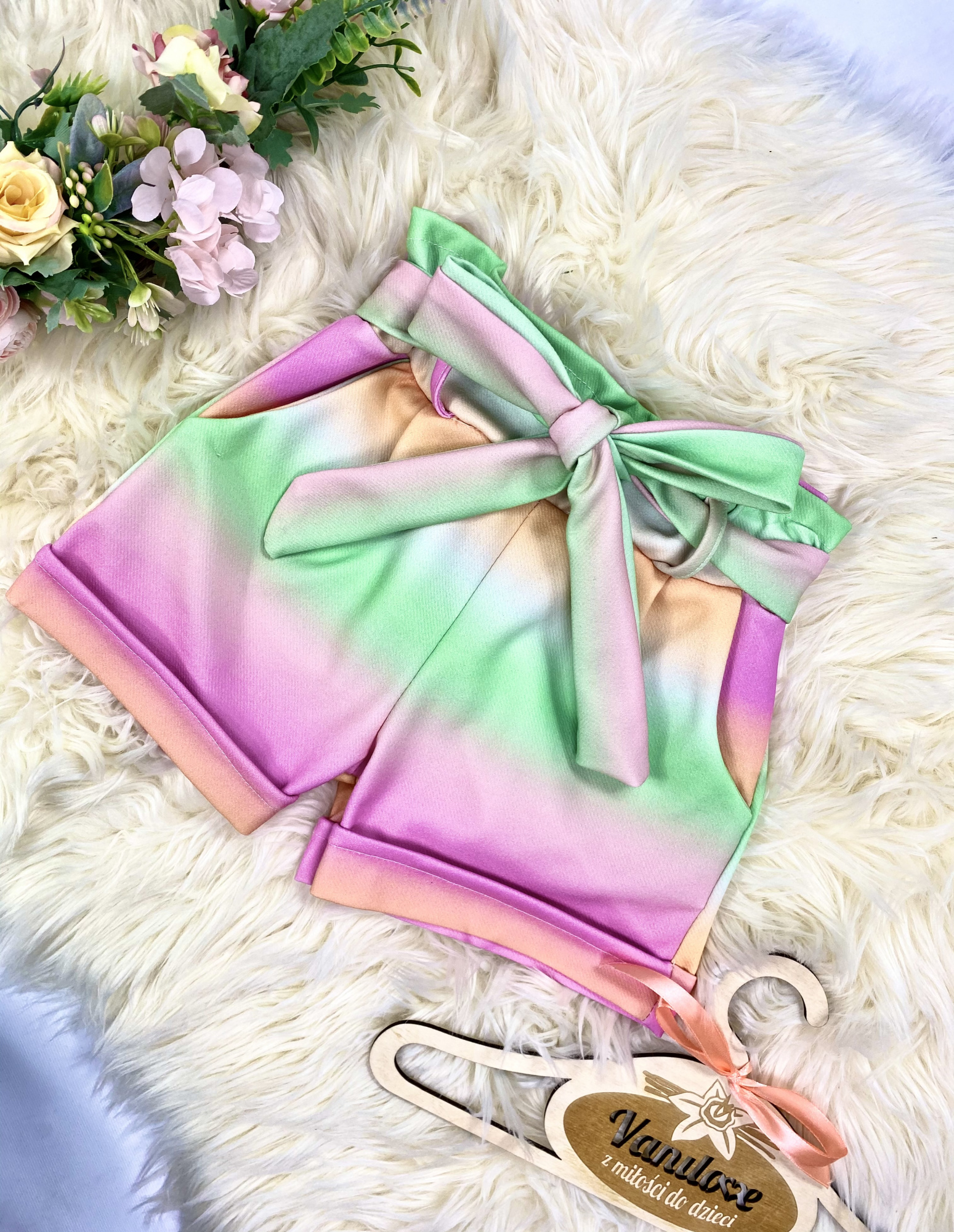 • spodenki w pasie posiadają elastyczną gumkę oraz dodatkowe wiązanie, po bokach kieszonki