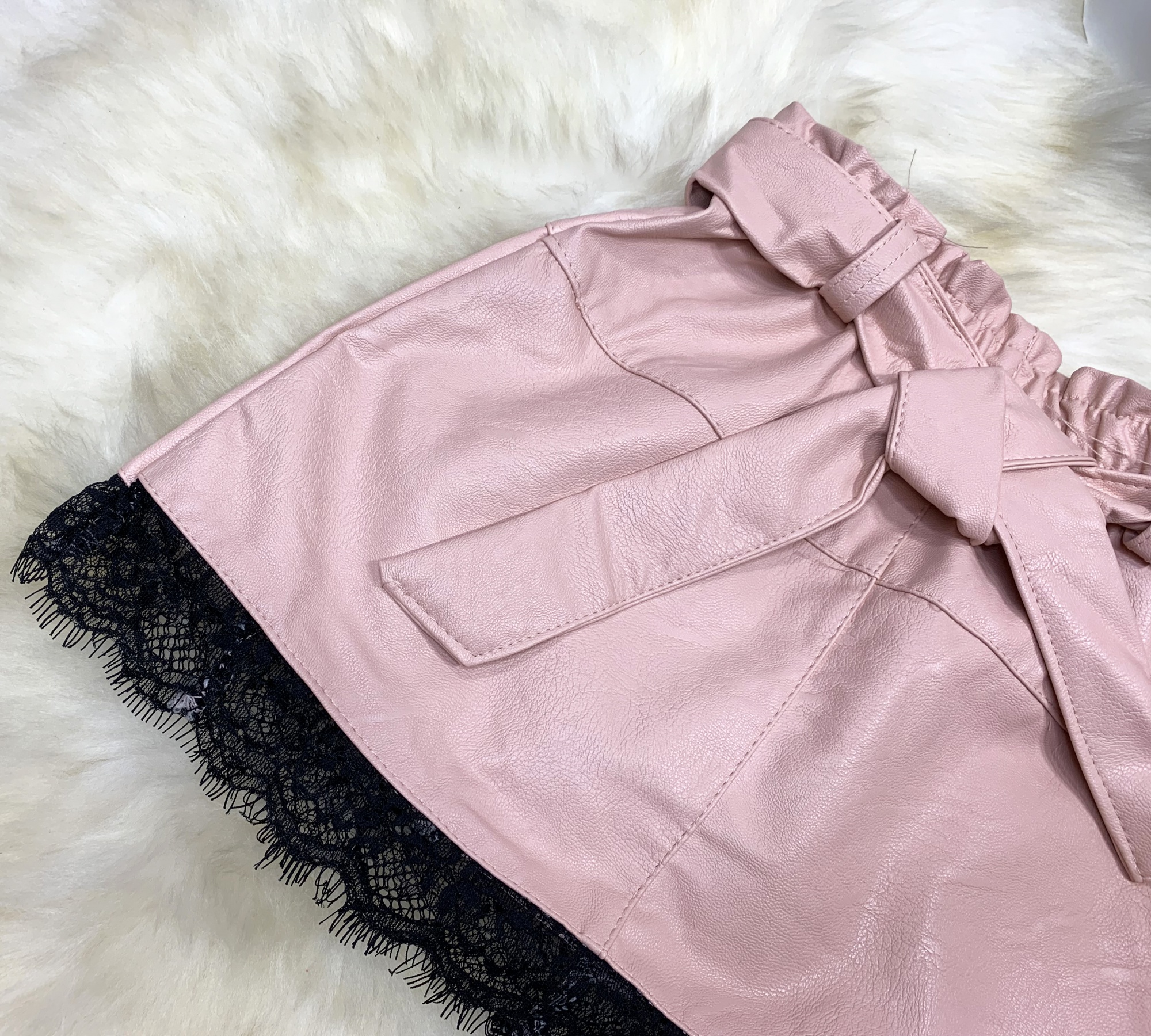 Spódniczka ekoskóra koronka - kolor jasny puder