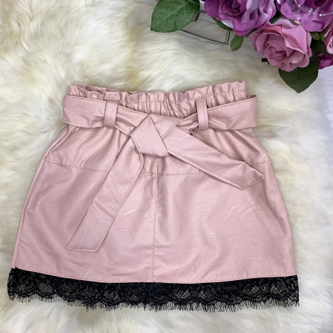 Spódniczka ekoskóra koronka - kolor jasny puder