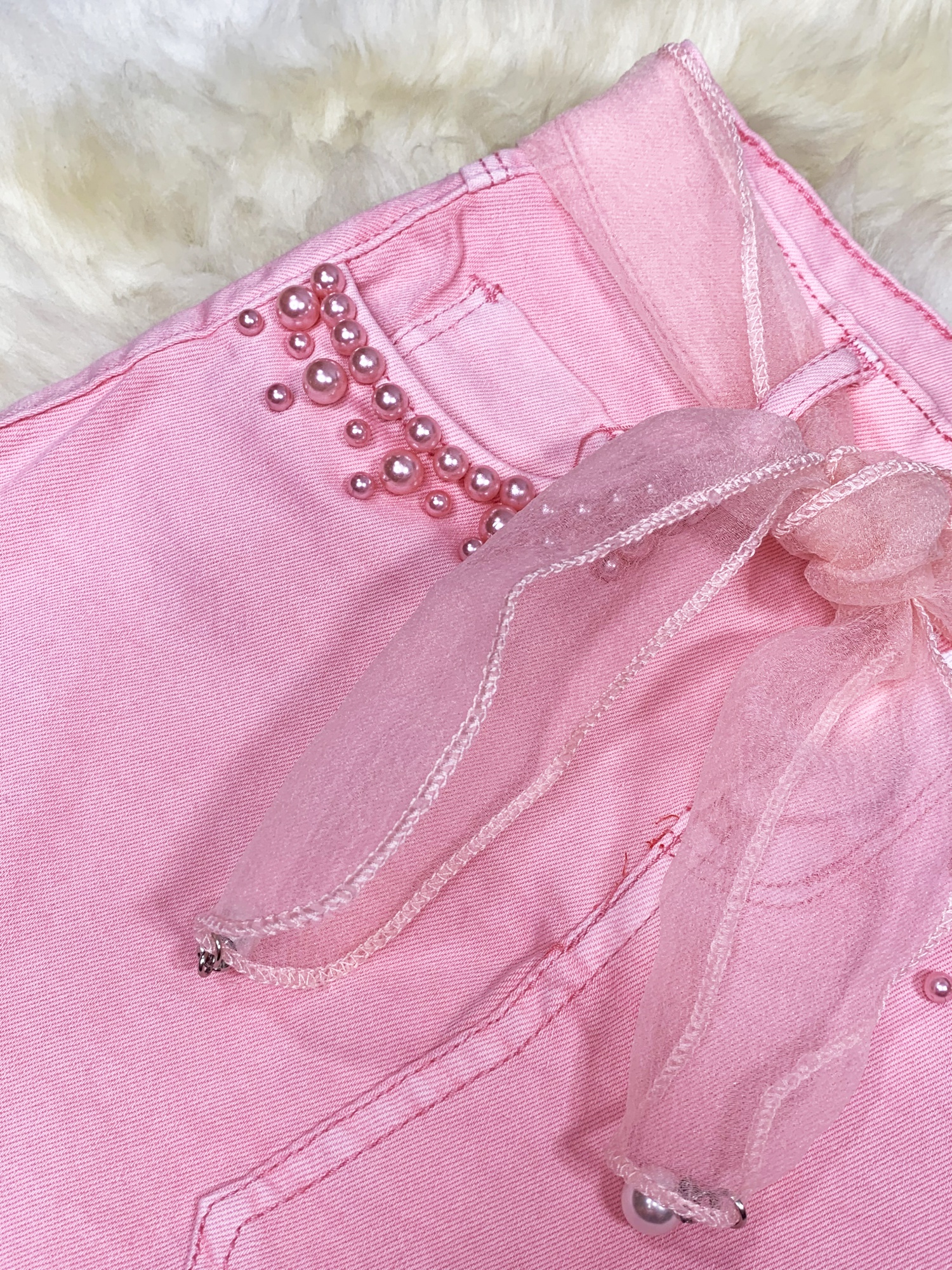 • zapinana na guziczek, dodatkowo ozdobnie wiązana tasiemką z perełkami