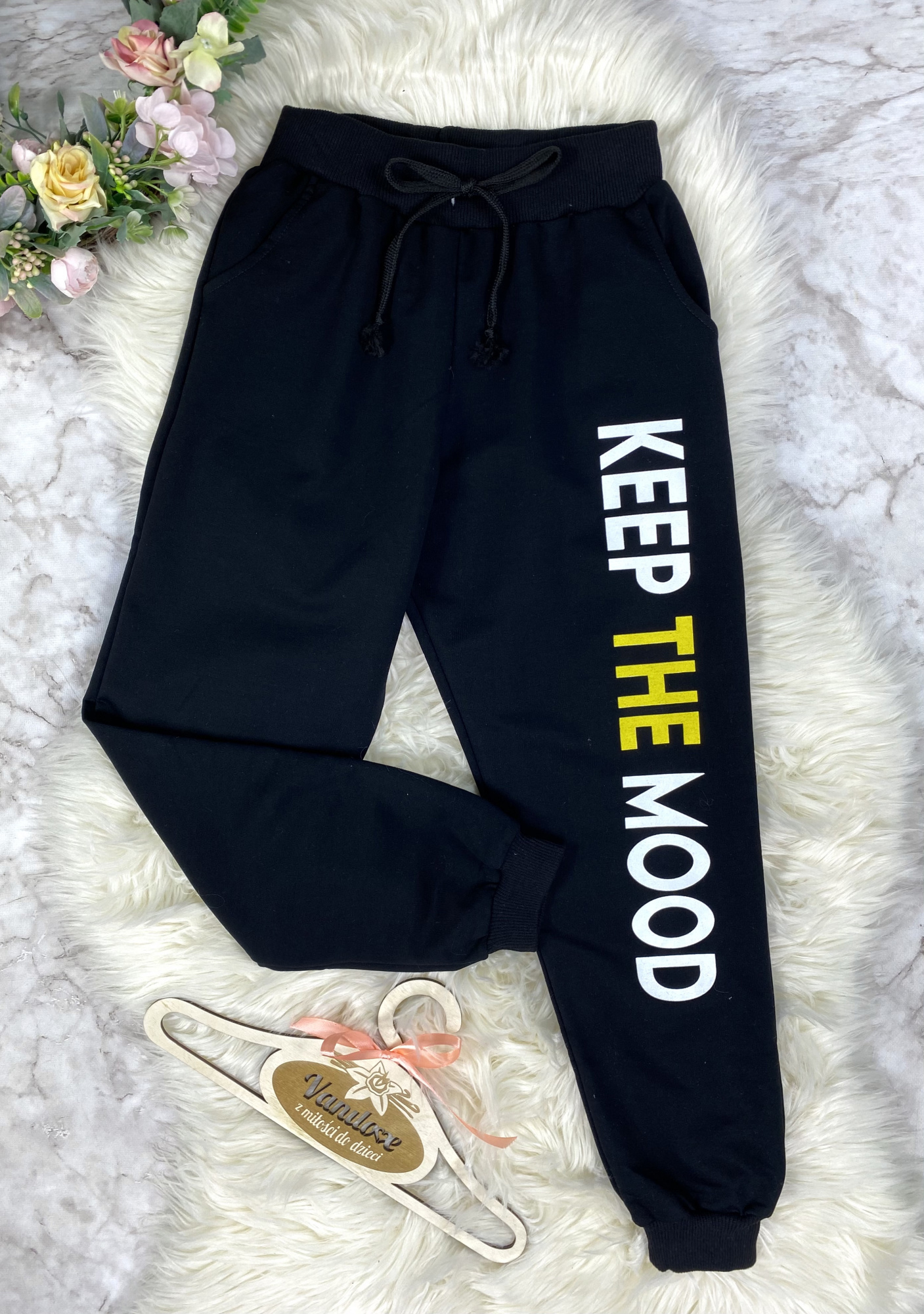 • spodnie posiadają elastyczną gumkę w pasie oraz nadruk wzdłuż lewej nogawki
