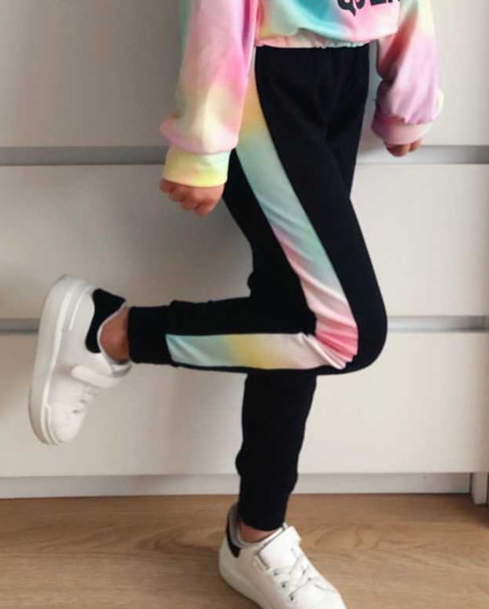 • spodnie posiadają elastyczną gumkę w pasie oraz kolorowe lampasy