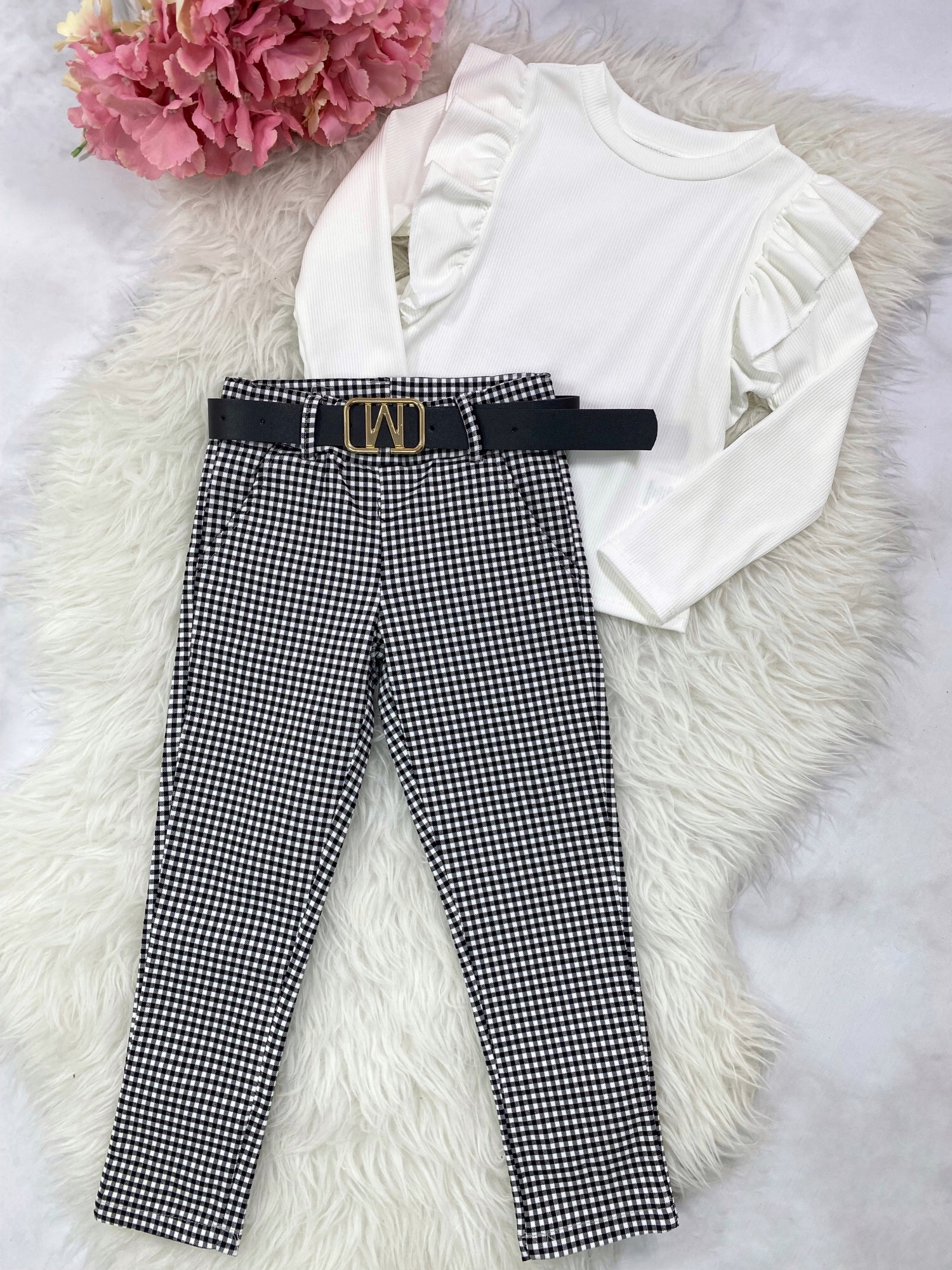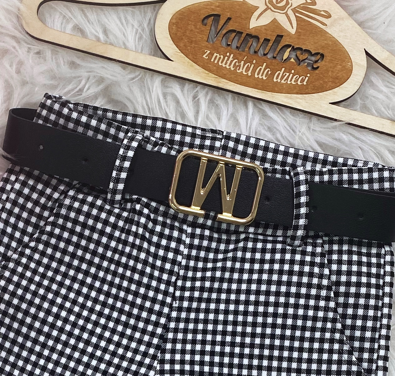 • spodnie na gumce w zestawie z czarnym paskiem