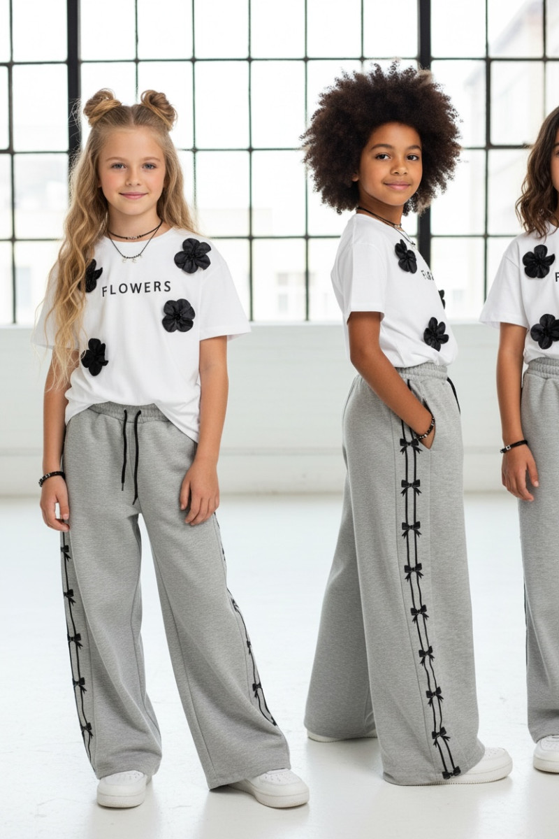 • hitowe szerokie nogawki w rozmiarach od 128 do 152.