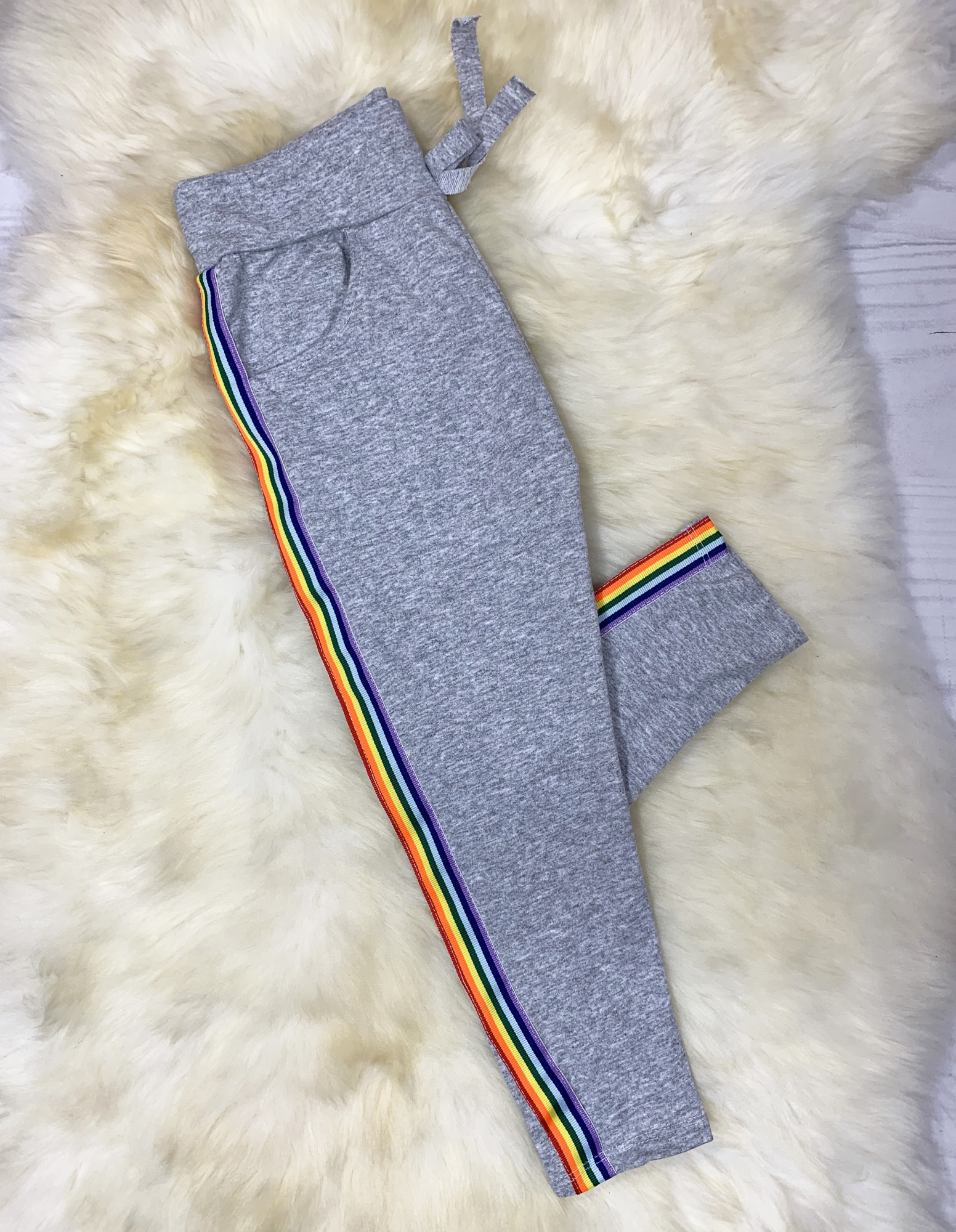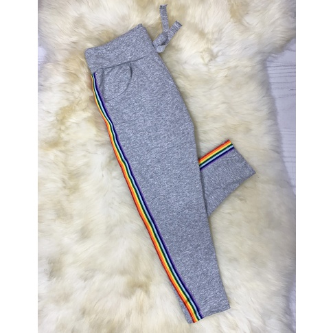 • spodnie z gumką w pasie ozdobione modnym kolorowym lampasem