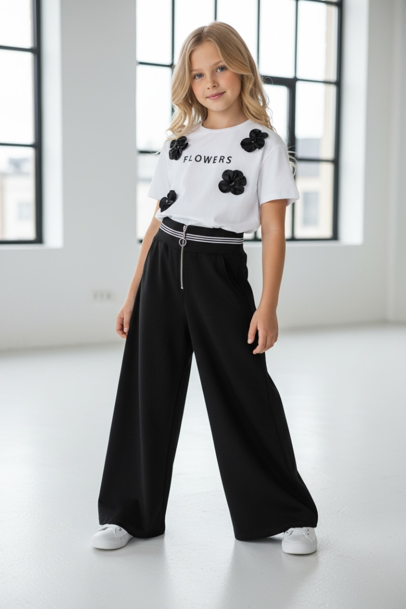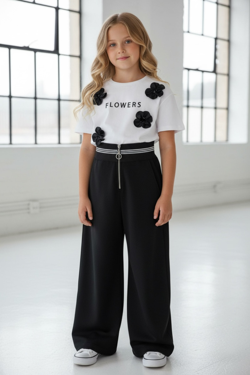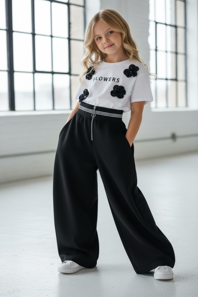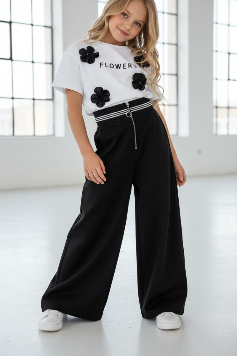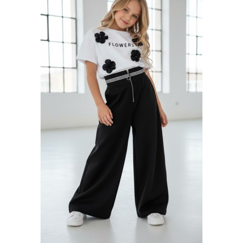 • hitowe szerokie nogawki w rozmiarach od 140 do 158