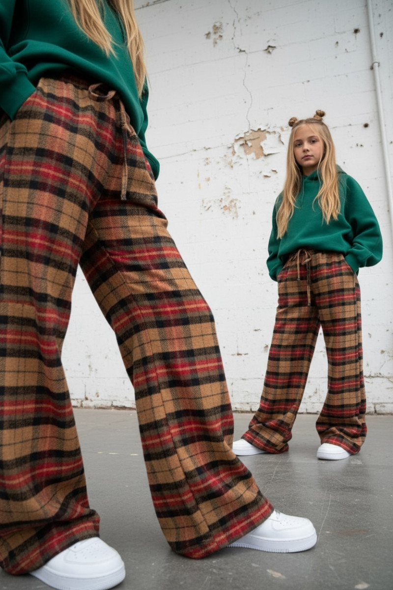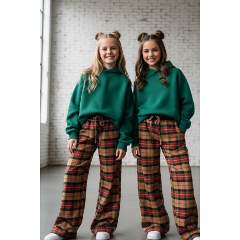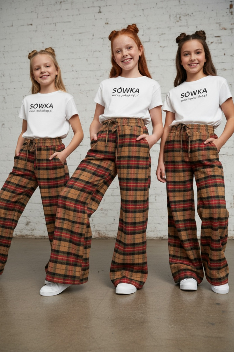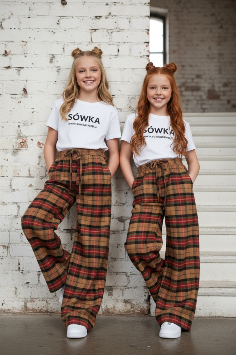 Spodnie dziewczęce Krata Beżowo-czerwone