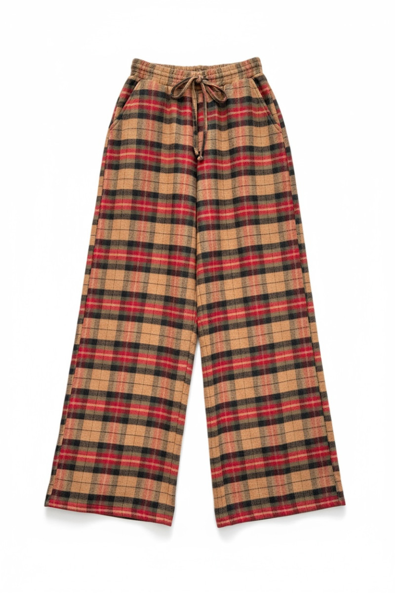 Spodnie Krata Beżowo-czerwone