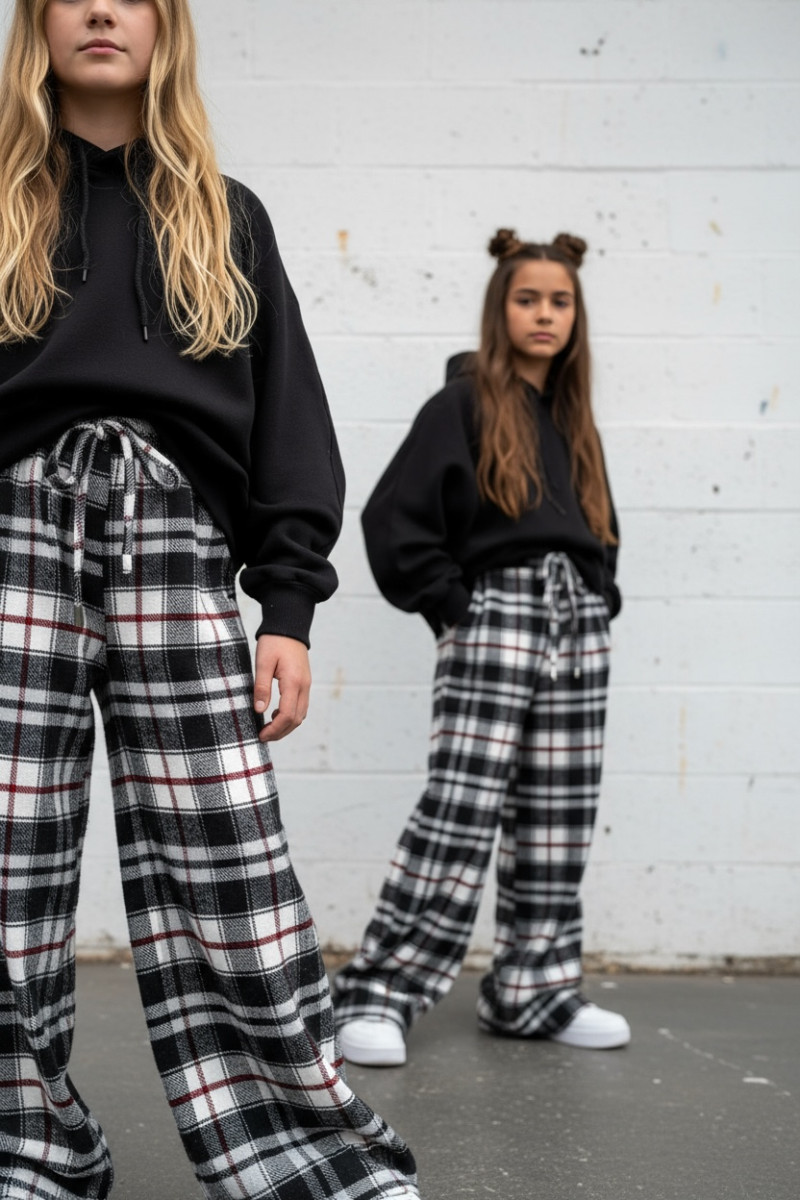 • lużne szerokie nogawki oraz regulacja na dole nogawki