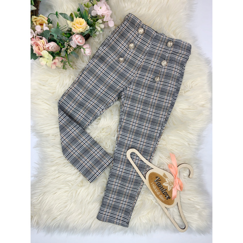 • spodnie w modną kratę zdobione złotymi guziczkami