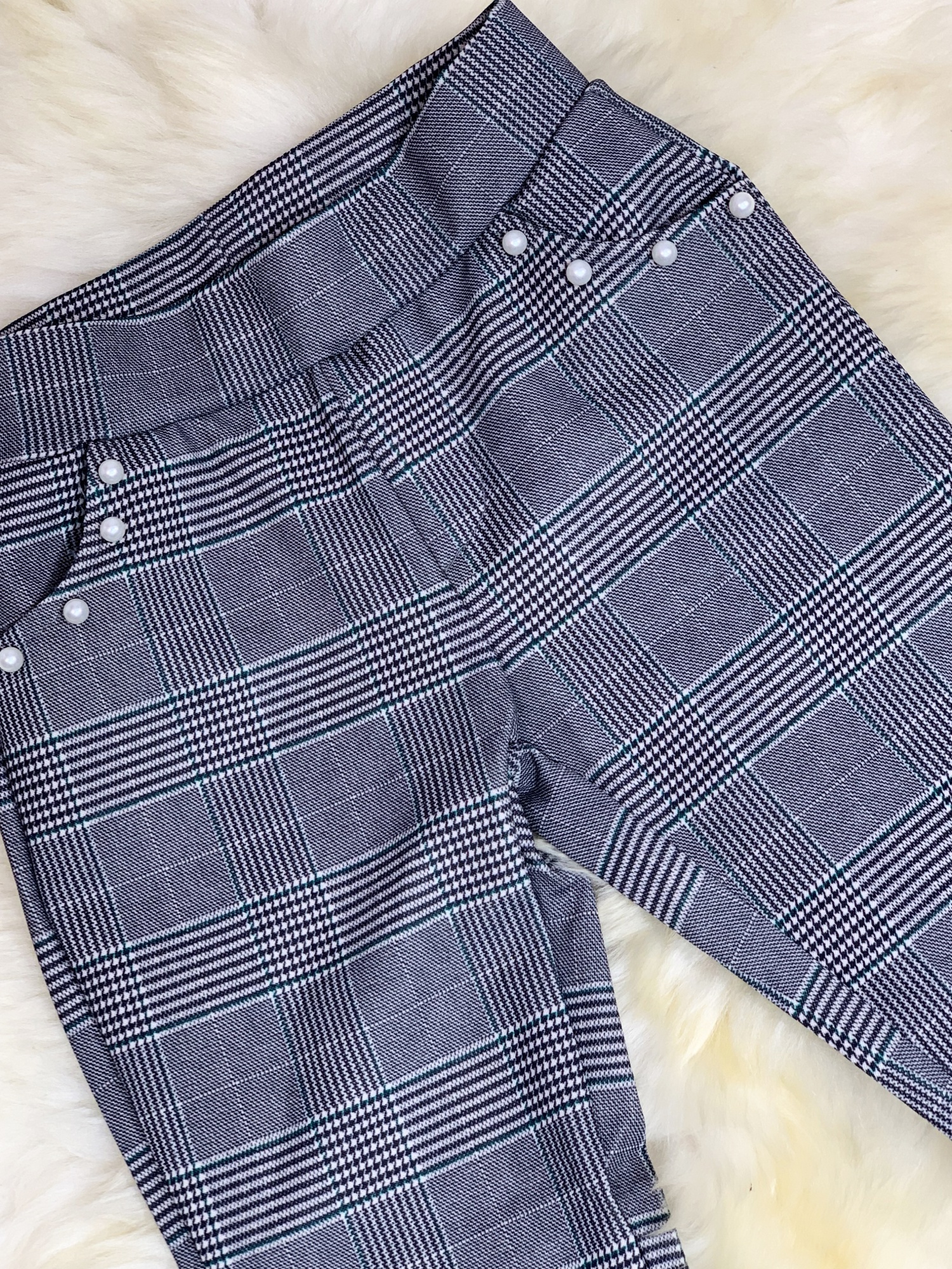 Spodnie wiosenne w modną kratę - akcent zielony