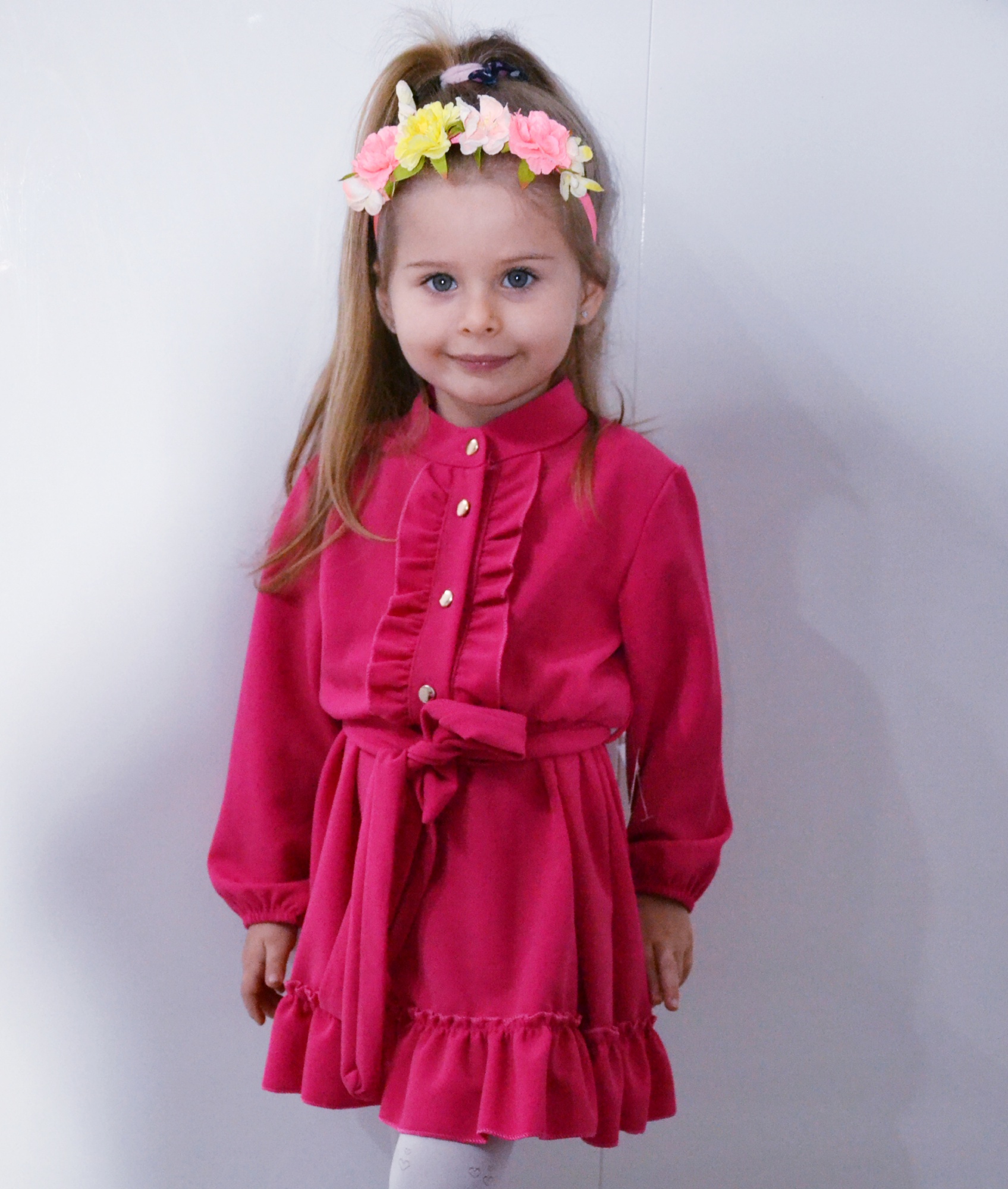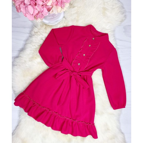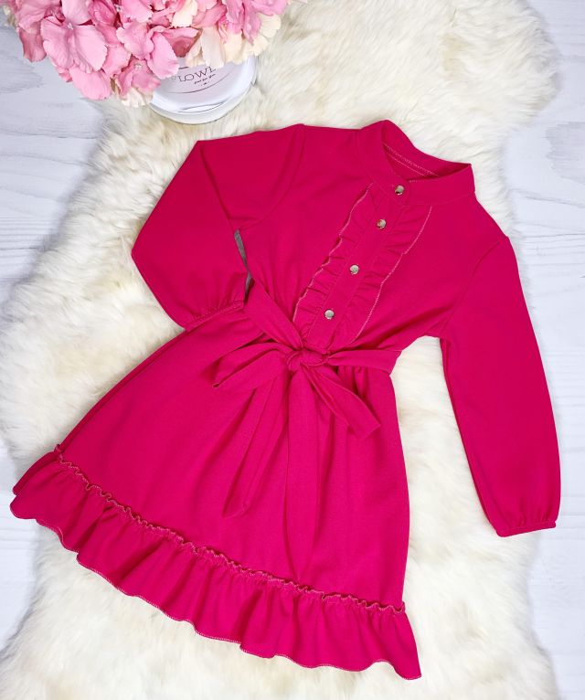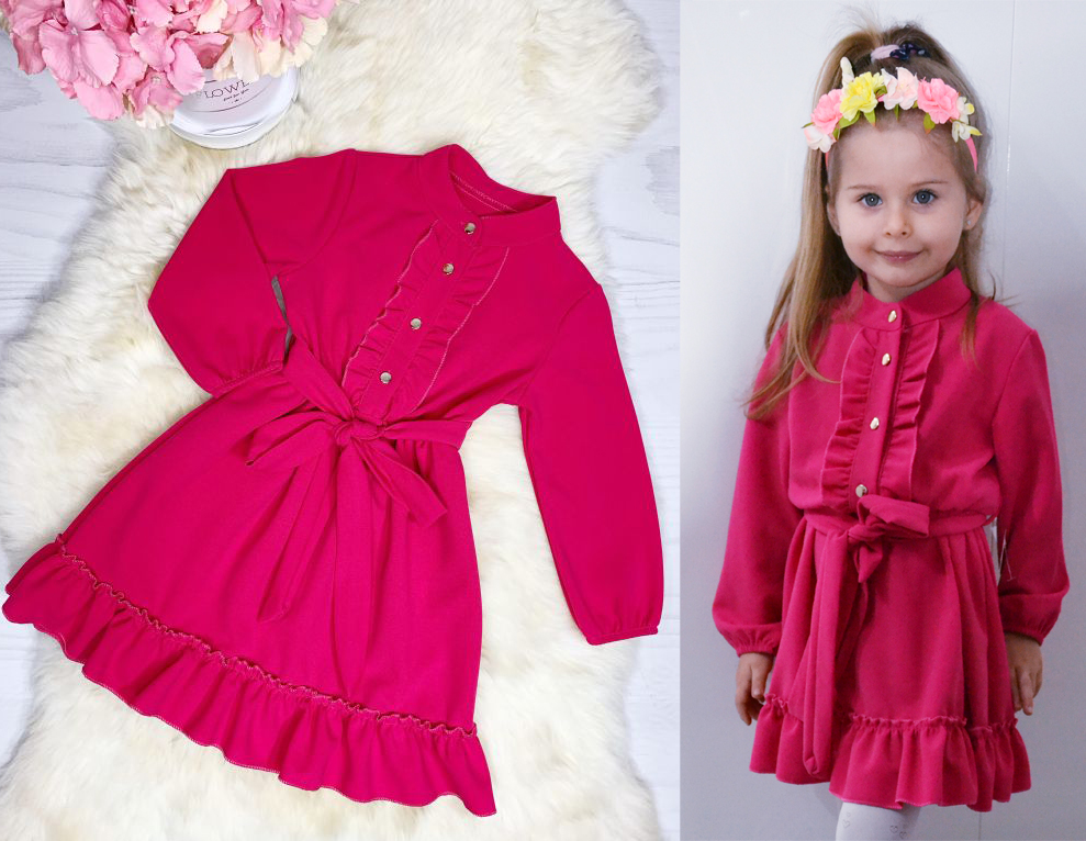 - piękna butikowa sukienka z żabotem zapinana na eleganckie guziczki