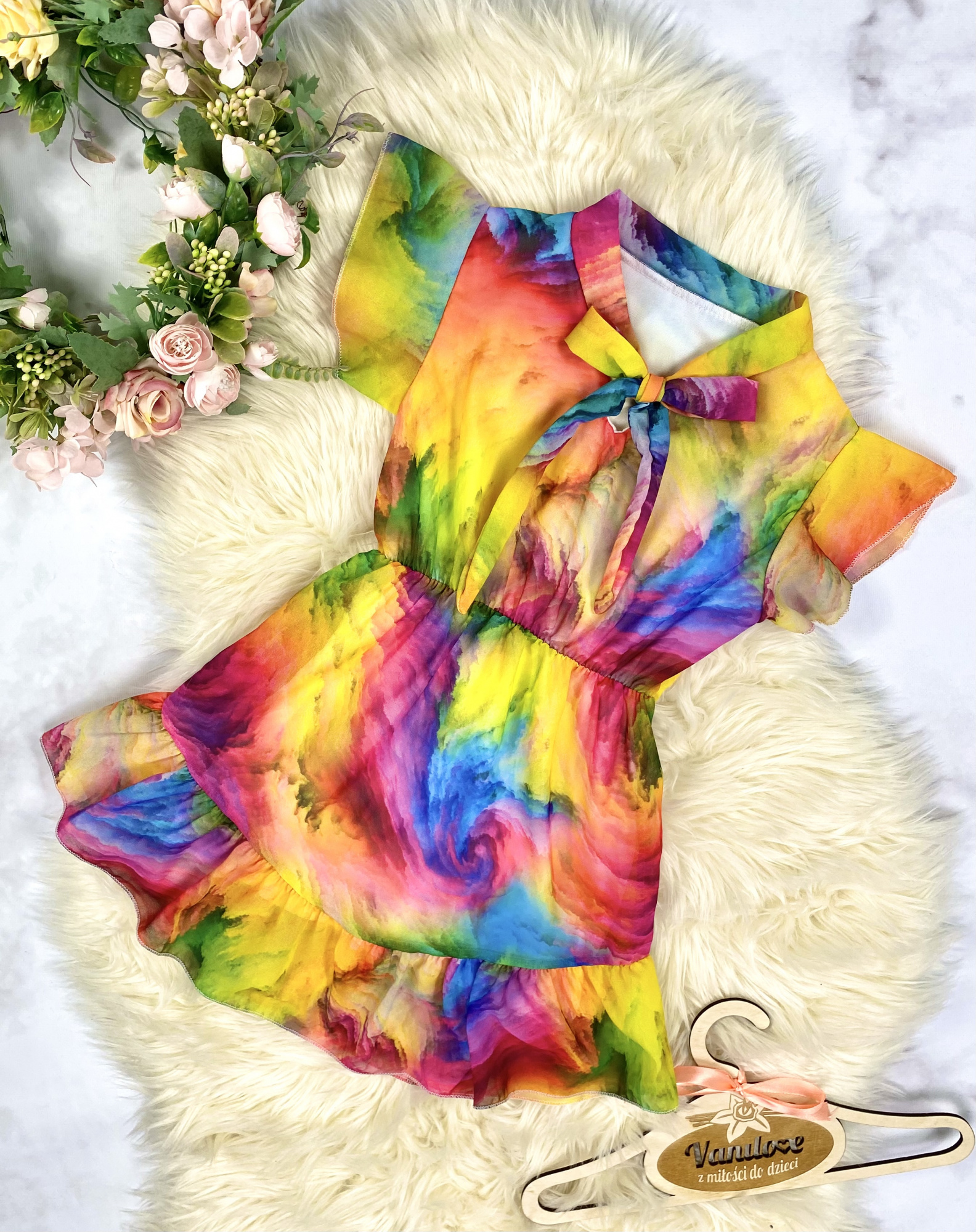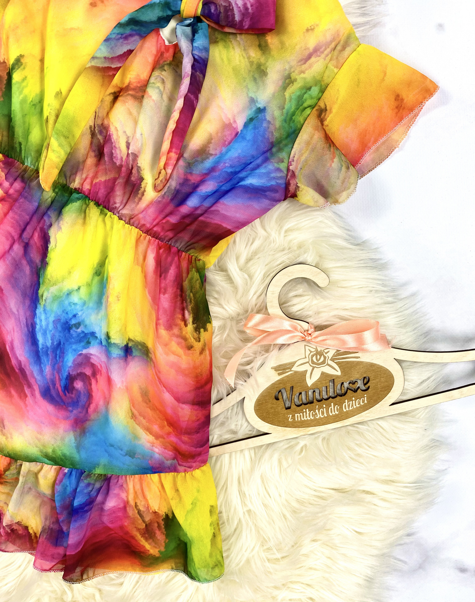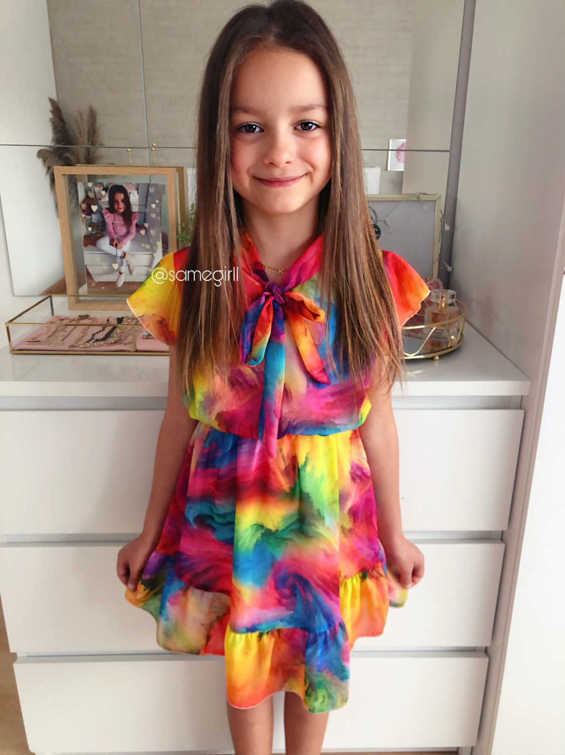 • sukienka w pasie posiada elastyczną gumkę, co daje piękny efekt taliowania