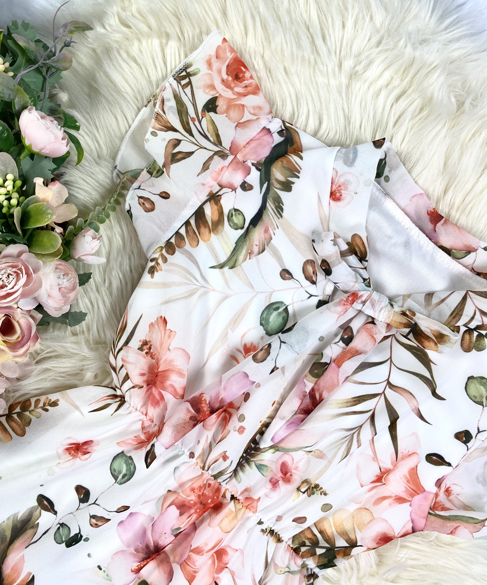 • sukienka w pasie posiada elastyczną gumkę, co daje piękny efekt taliowania