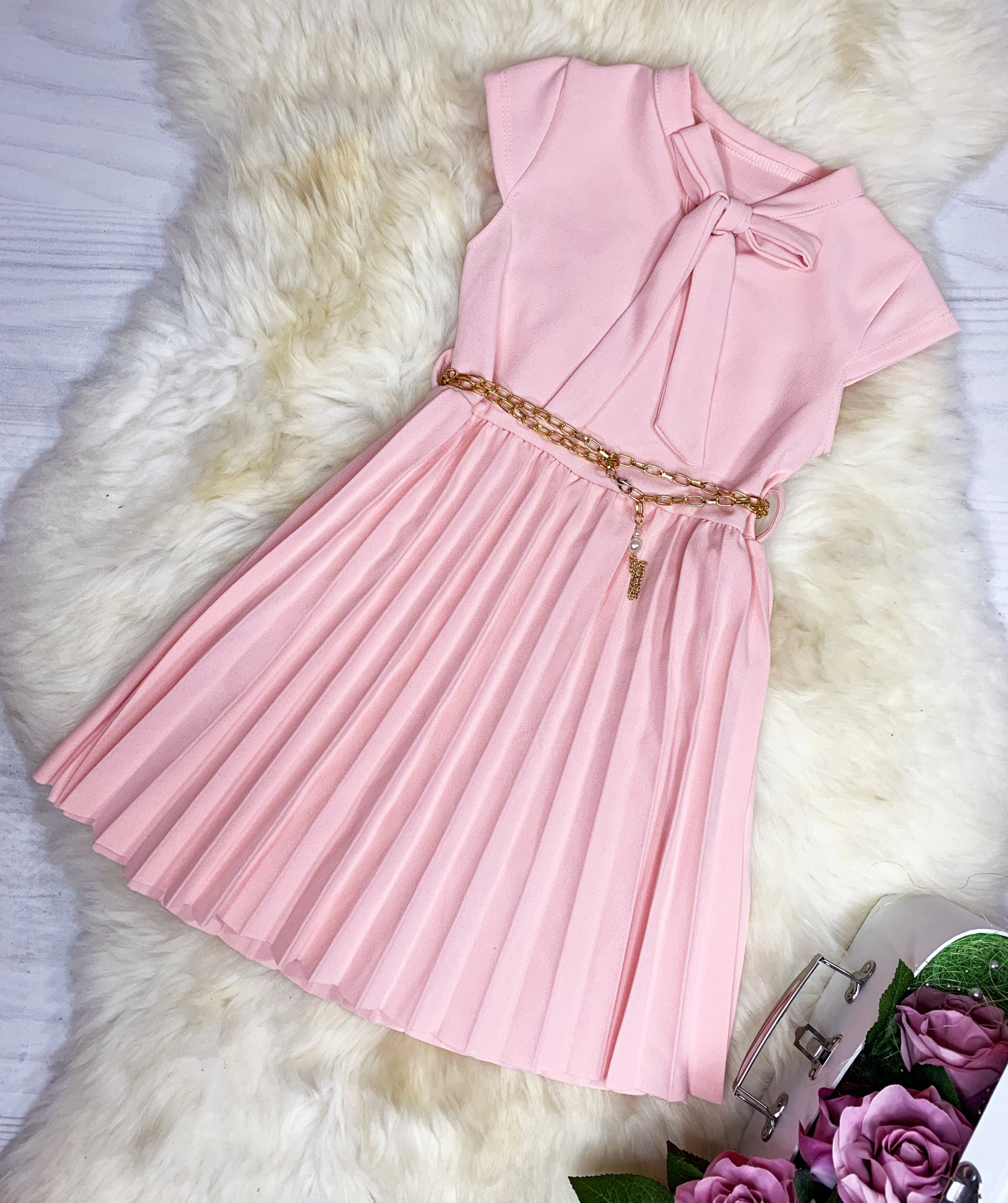 Sukienka dla Dziewczynki Elegance Kokardka - kolor puder