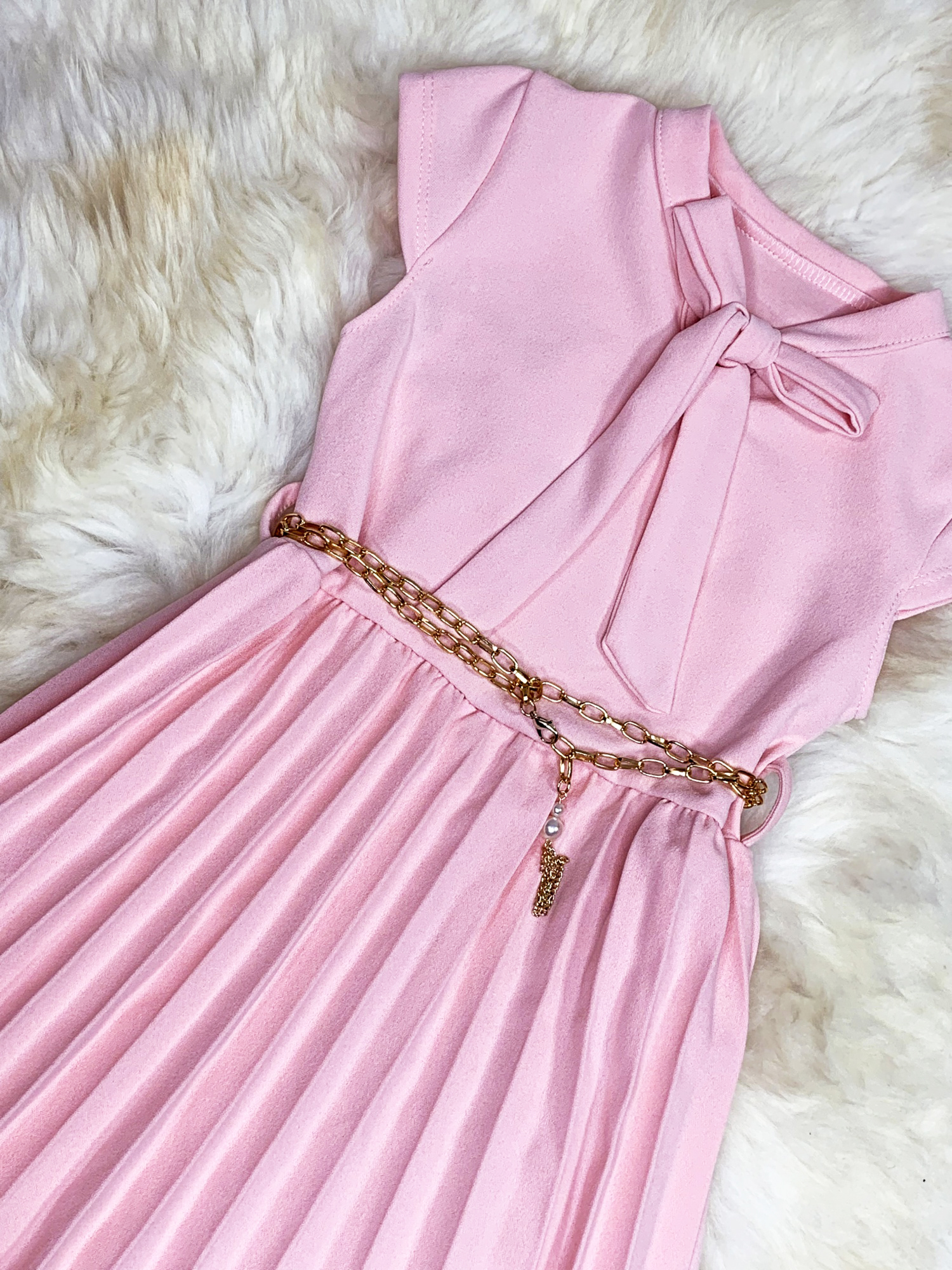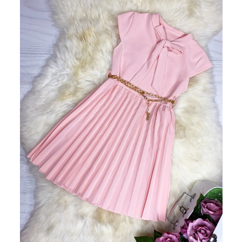 • elegancka sukienka z gustownym wiązaniem w  kokardę , dół plisowany pięknie się układa