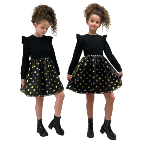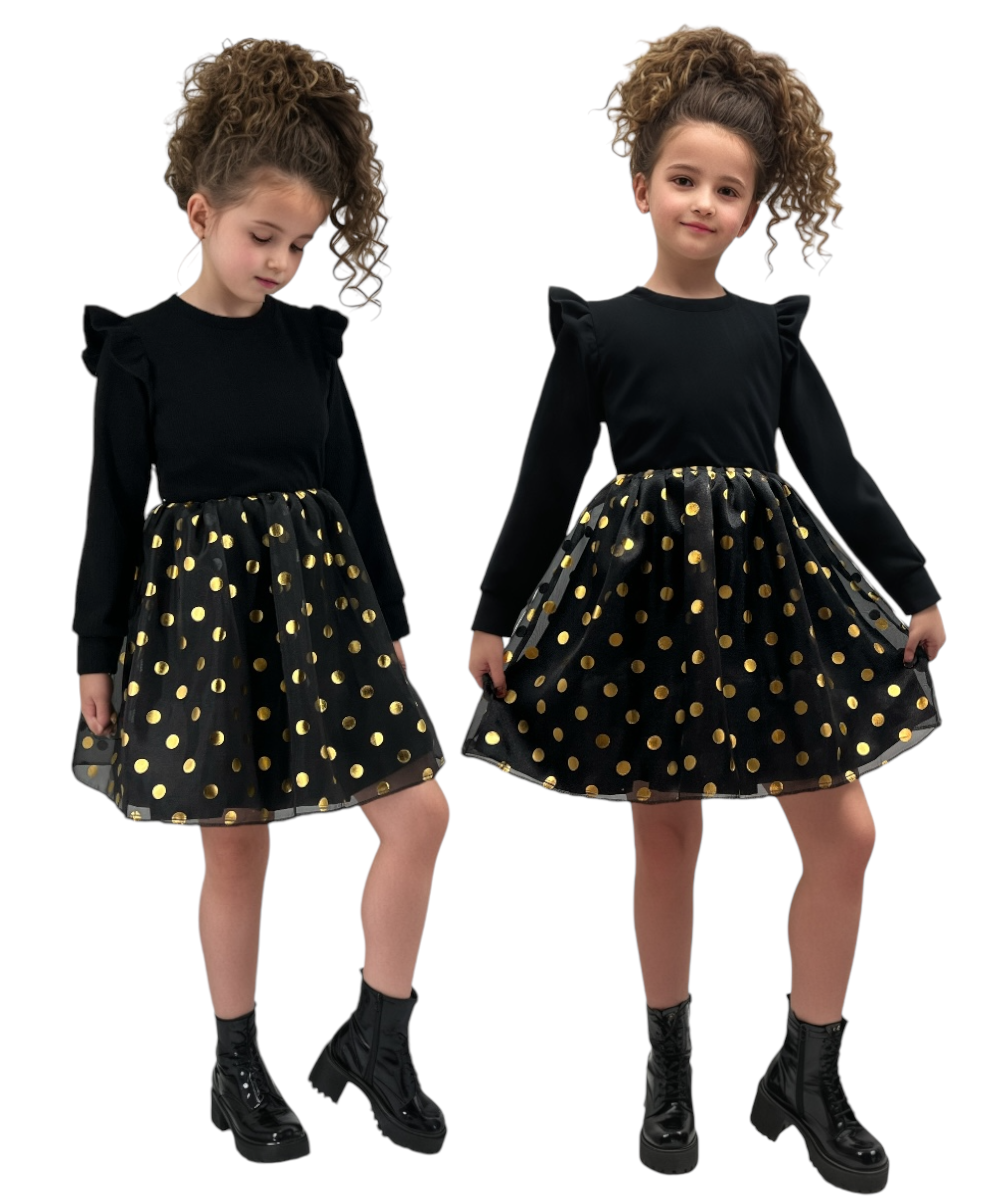 Skład sukienki : prążek i tiul , 95% poliester, 5% elastyna