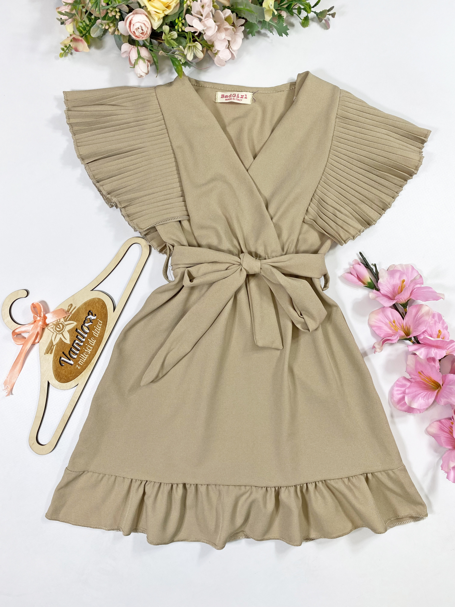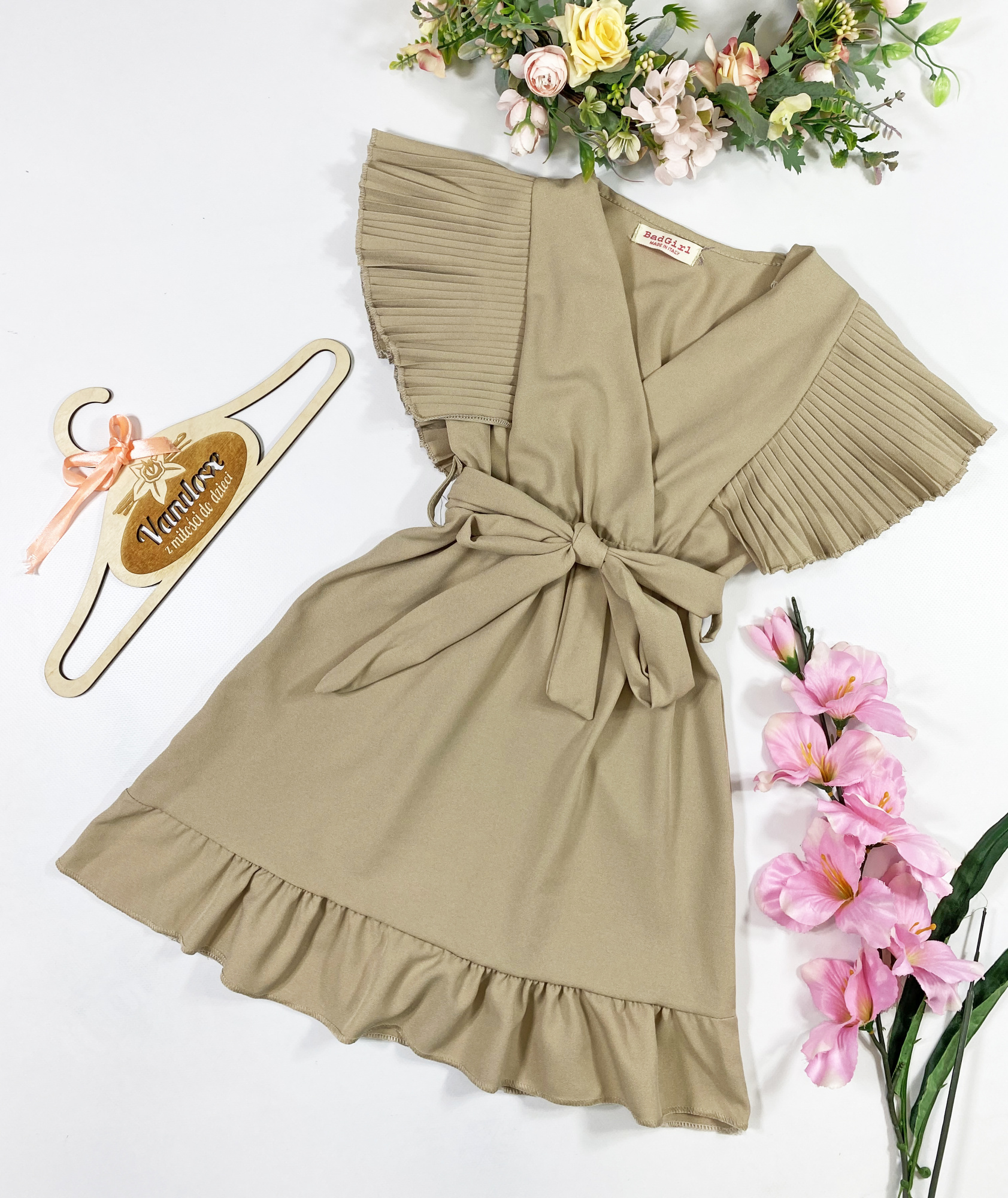 • sukienka posiada w pasie gumkę oraz wiązanie na kokardkę