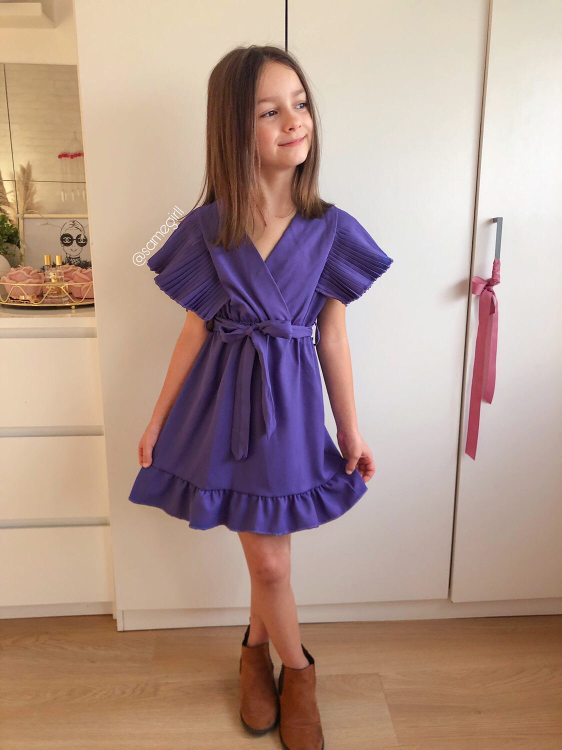 • sukienka posiada w pasie gumkę oraz wiązanie na kokardkę