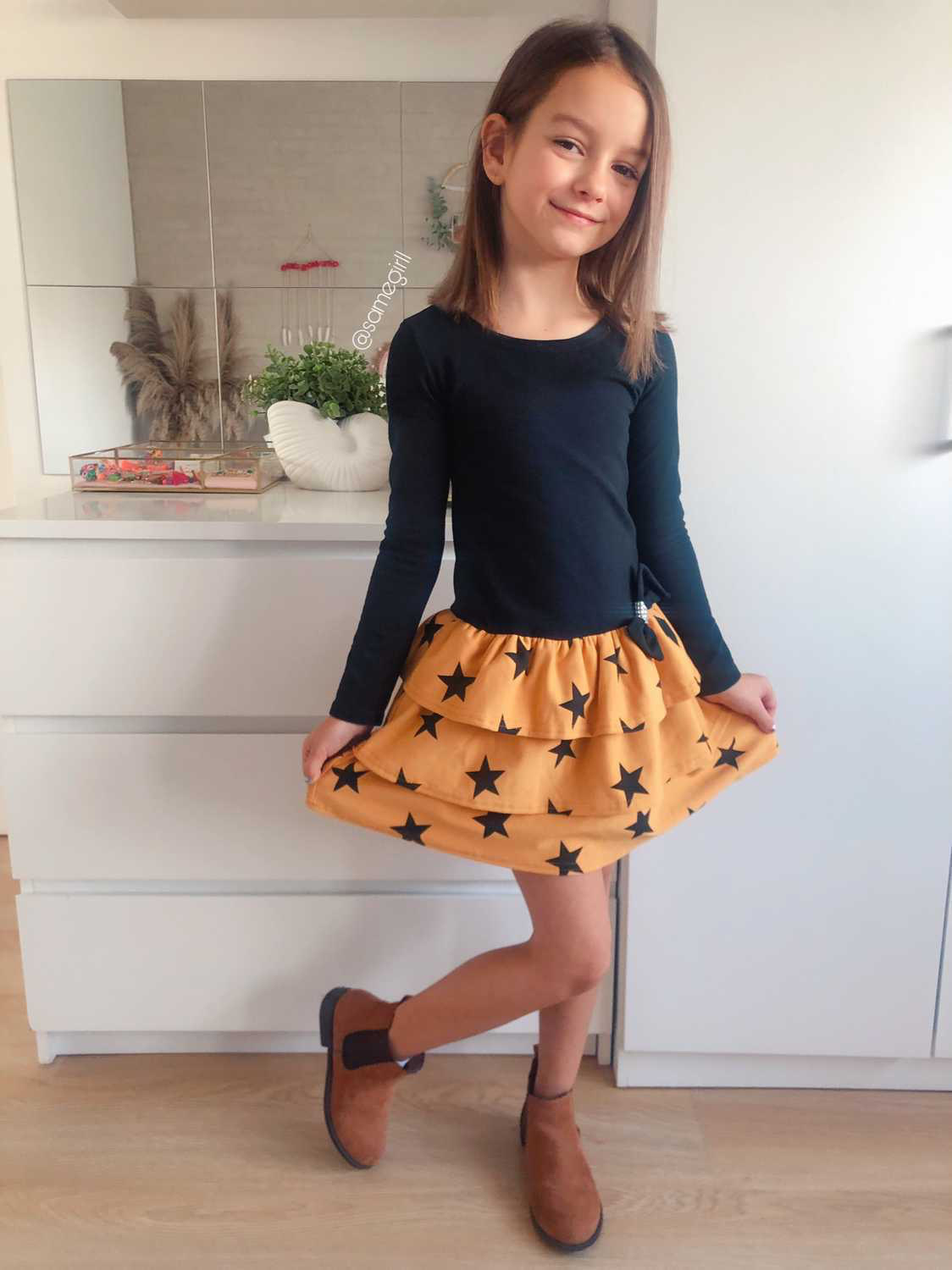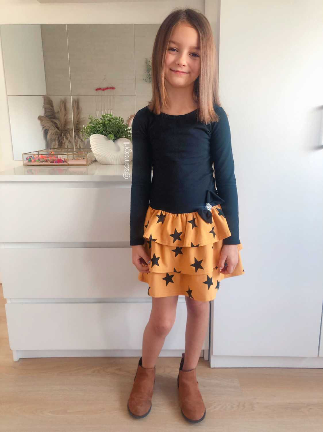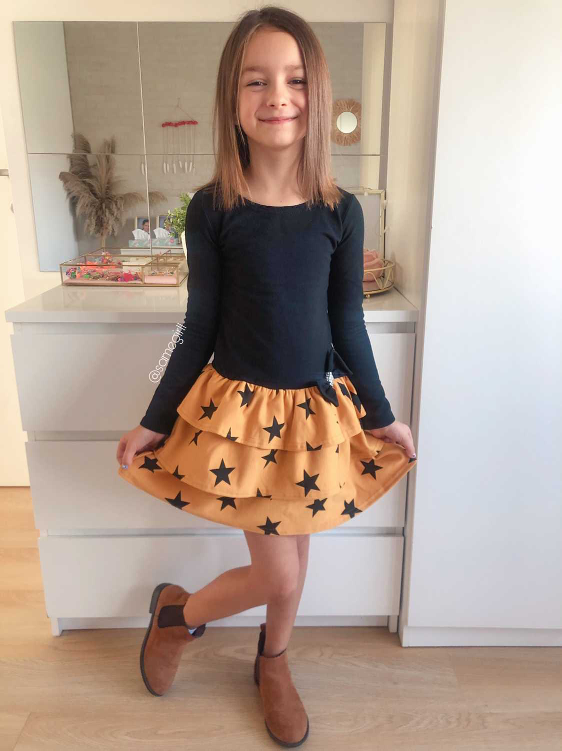 • góra gładka w kolorze czarnym, dół w kolorze musztardowym z czarnymi gwiazdkami