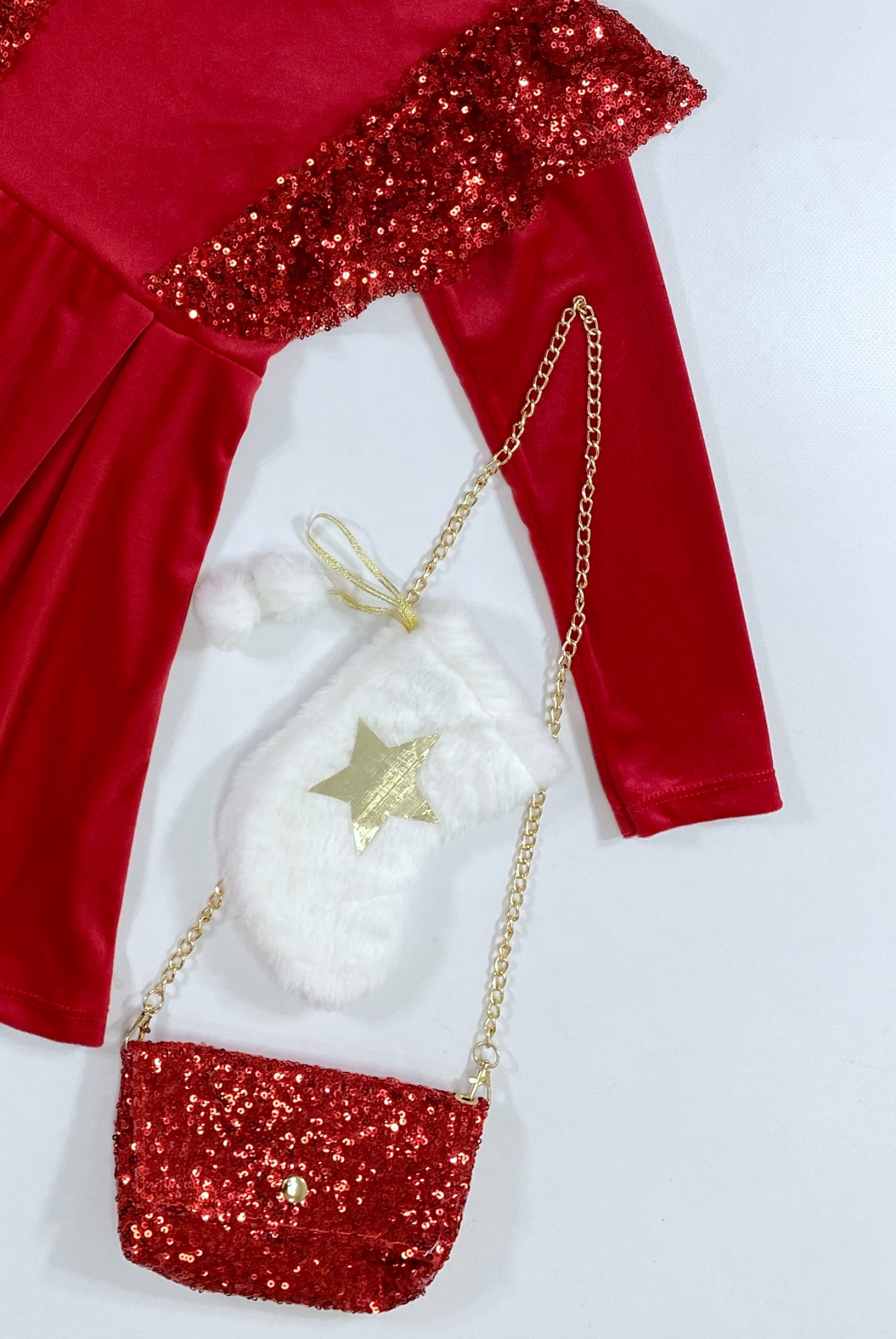 • w zestawie cekinowa torebka na złotym łańcuszku