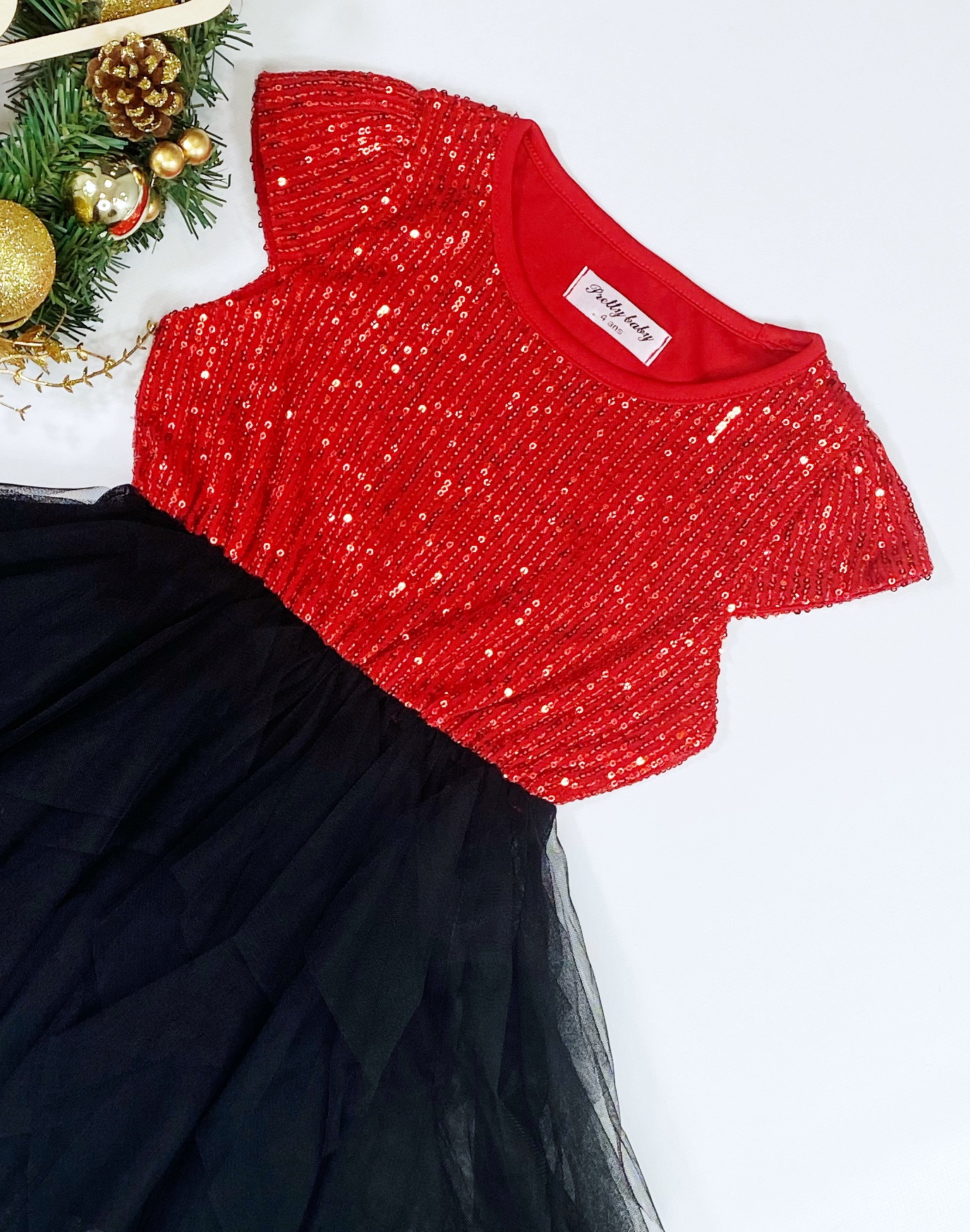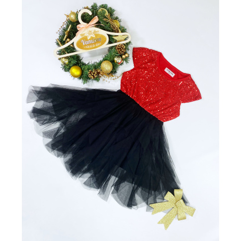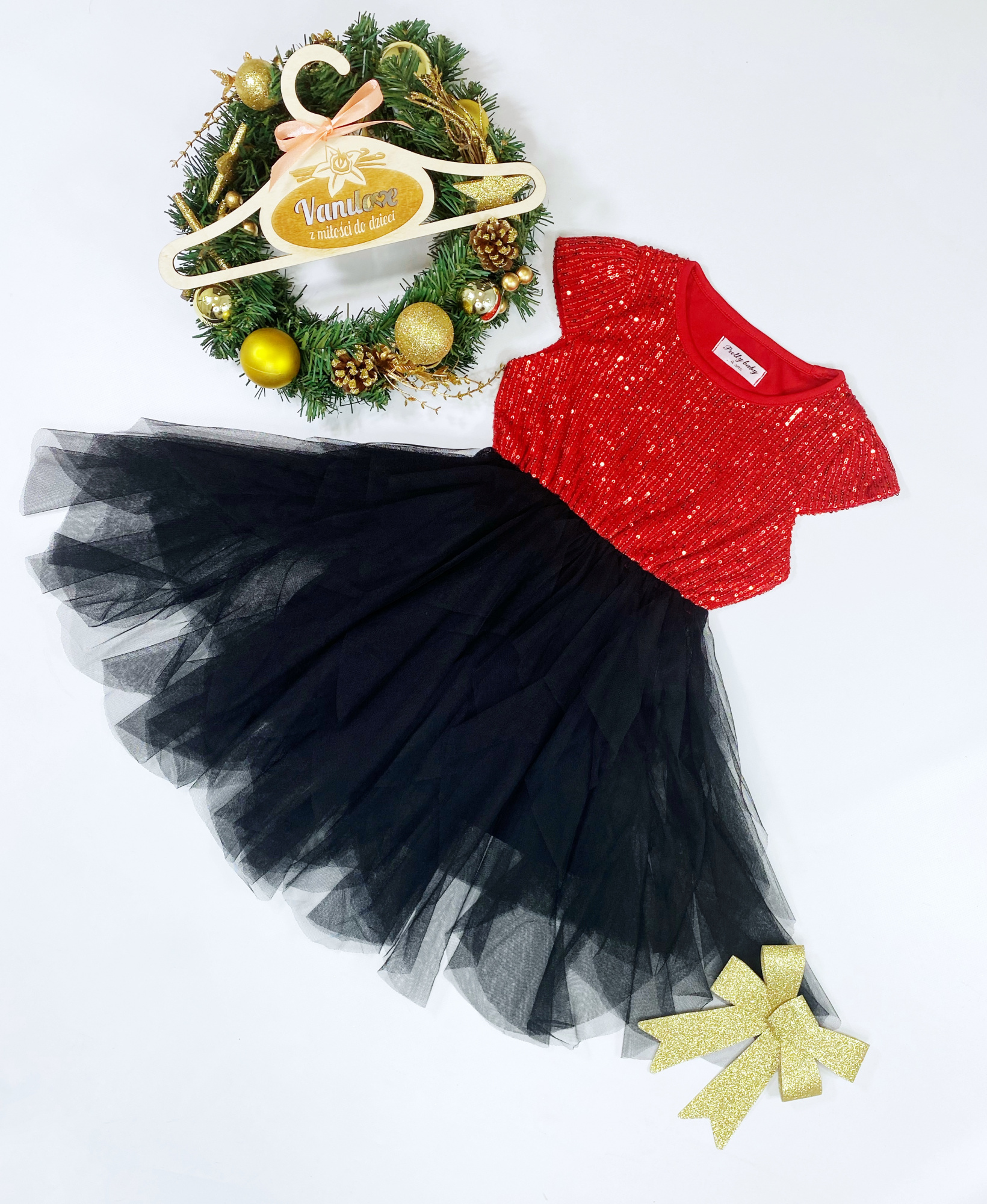 - góra sukienki w kolorze czerownym - ozdobiona cekinkami