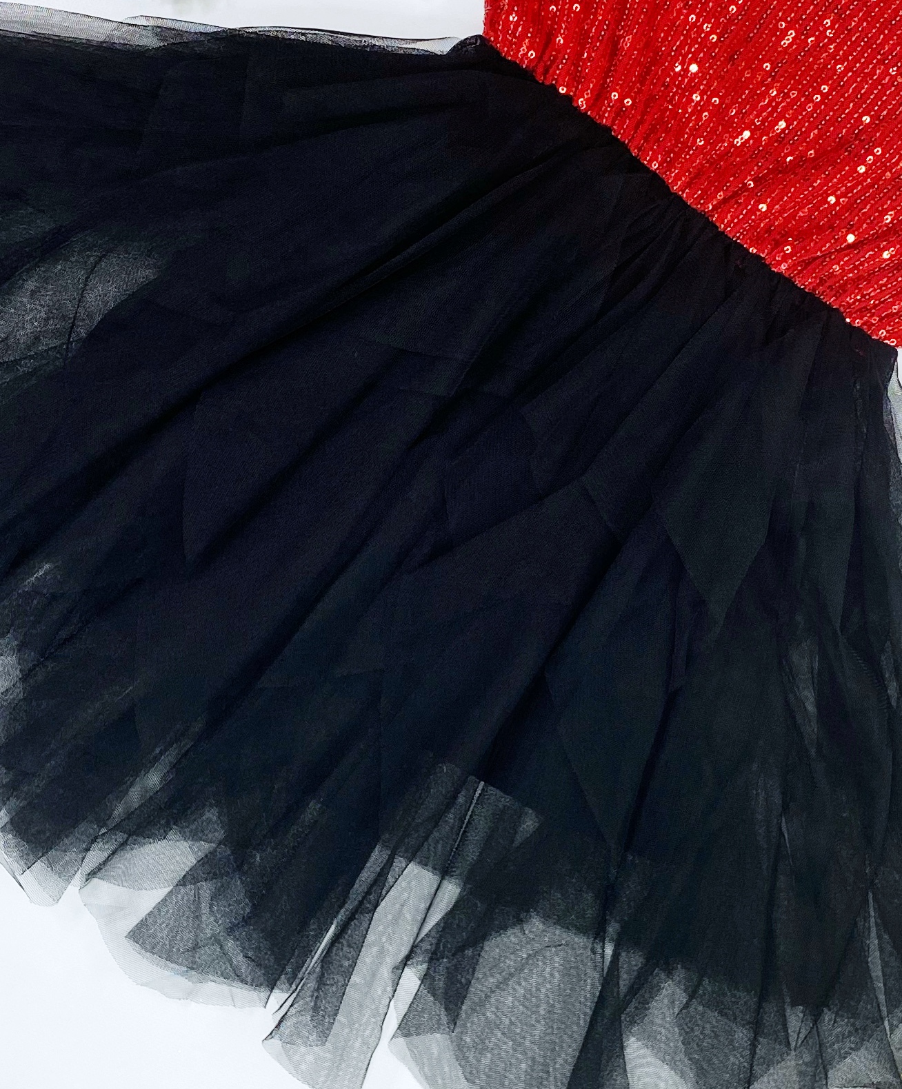 - dół sukienki czarny - z asymetrycznymi tiulowymi falbankami